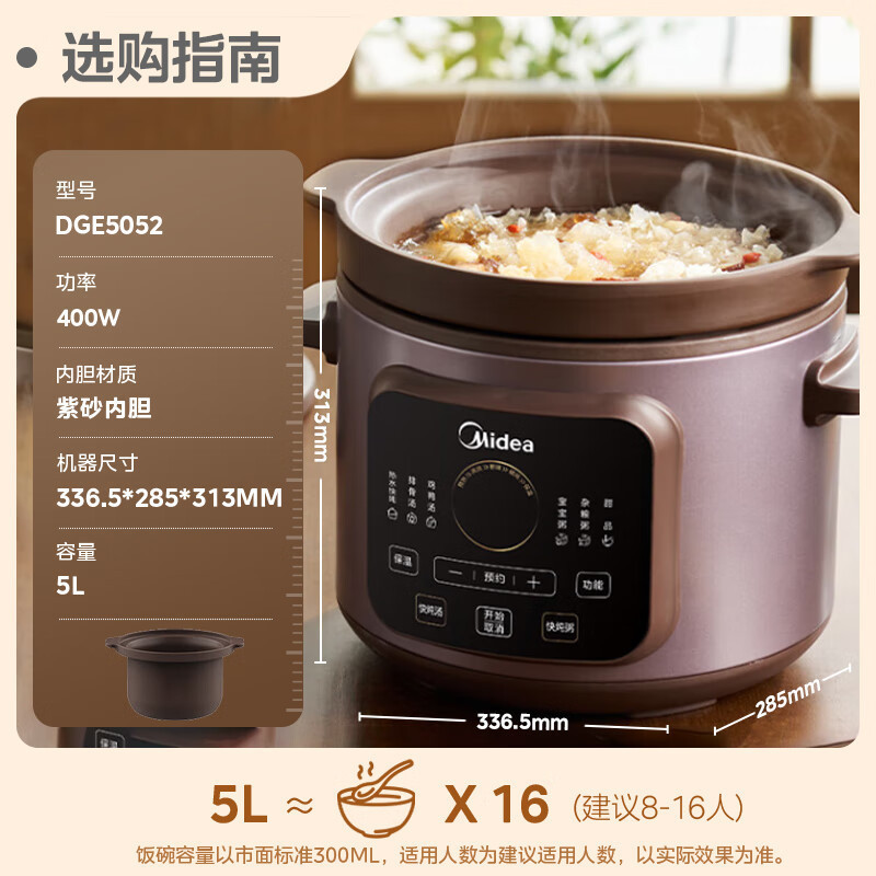 美的電気シチューポット 5L 紫砂スープポット家庭用プラグイン全自動セラミックシチュースープポット DGE5052