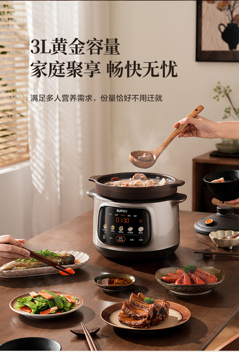 蘇泊爾電気シチュー鍋家庭用シチュー鍋電気土鍋杯陶磁器煮30YC87250YC872