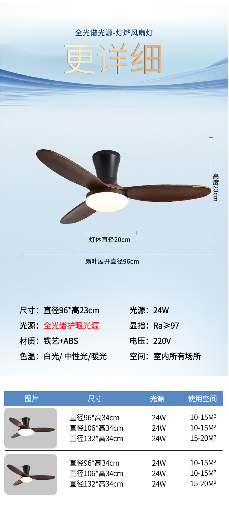 尺寸 28寸吸顶黑+胡桃木色实木叶-3叶-小灯盘【72*23】,36寸吸顶黑+胡桃木色实木叶-3叶-小灯盘【96*23】,36寸吸顶黑+胡桃木色实木叶-3叶-大灯盘【96*23】,42寸吸顶黑+胡桃木色实木叶-3叶-小灯盘【106*23】,42寸吸顶黑+胡桃木色实木叶-3叶-大灯盘【106*23】,52寸吸顶黑+胡桃木色实木叶-3叶-小灯盘【132*23】,52寸吸顶黑+胡桃木色实木叶-3叶-大灯盘【132*23】,42寸吊杆-白简约风扇灯