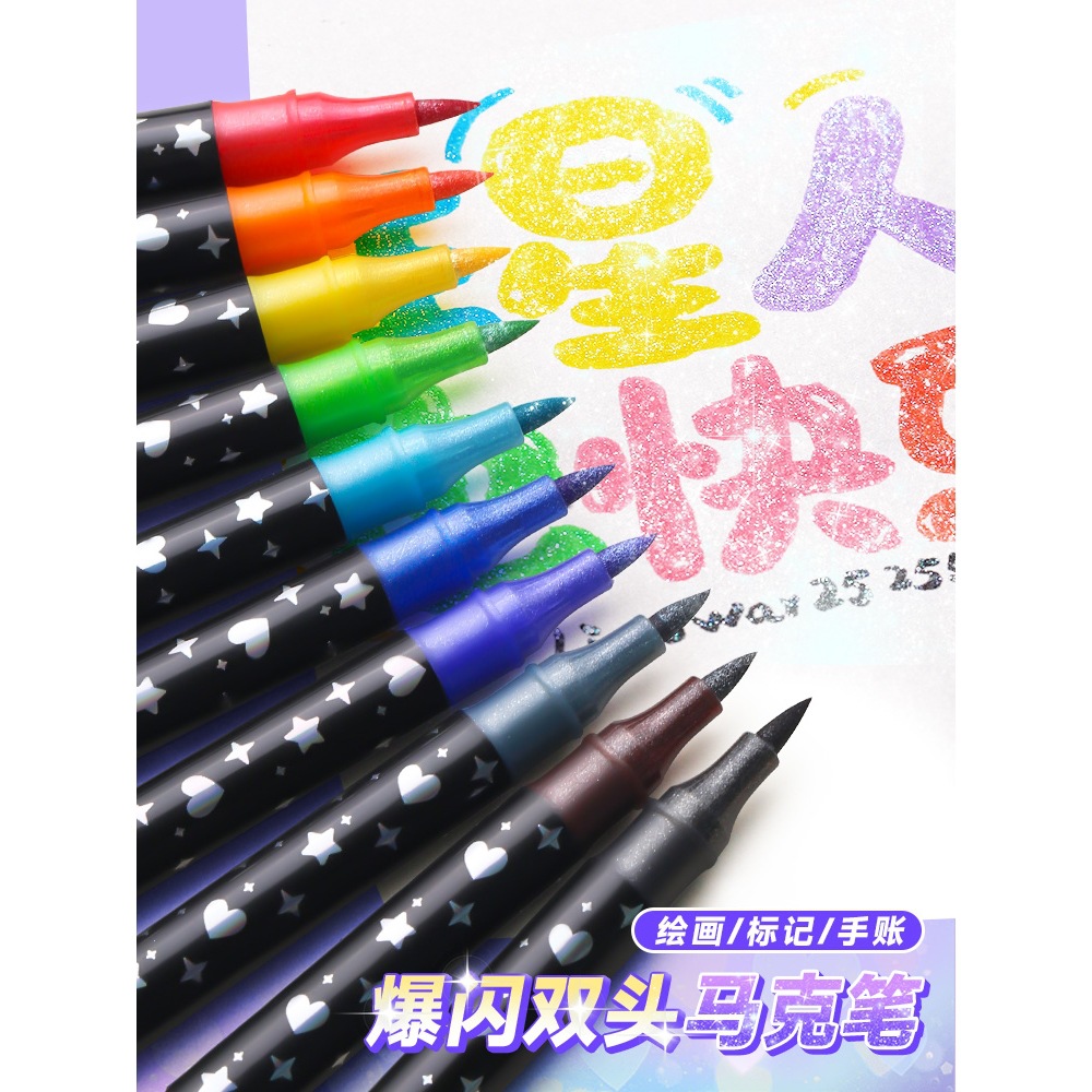 双頭2色グリッターマーカーペン ソフトヘッド水彩ペン 小学生 アートペイントブラシ 蛍光ペン グリッター付き 子供用