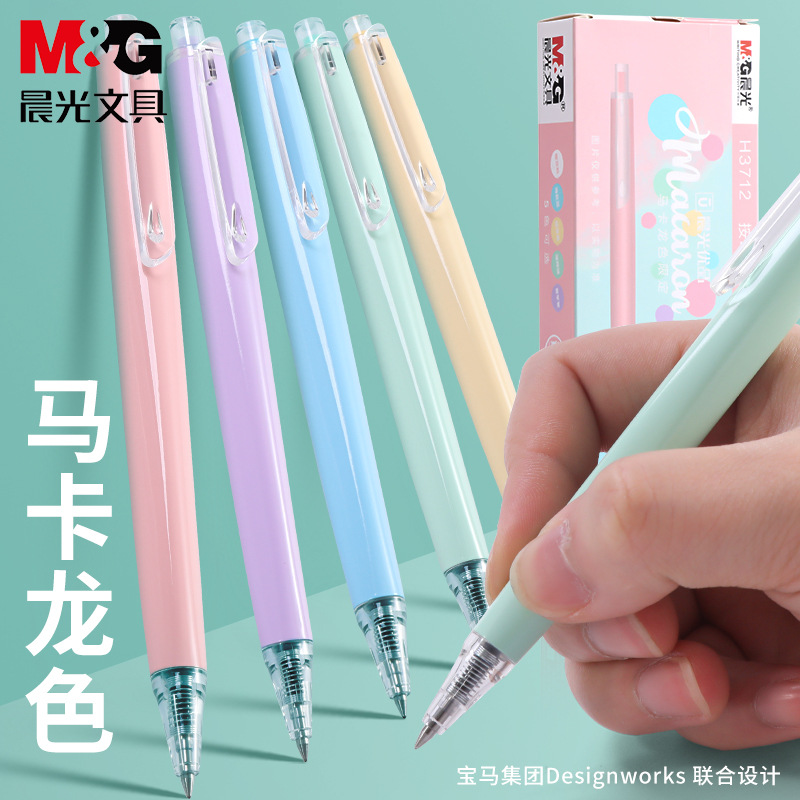 晨光优品按动中性笔芯黑0.5mm马卡龙限定签字水笔红笔学生用H3701