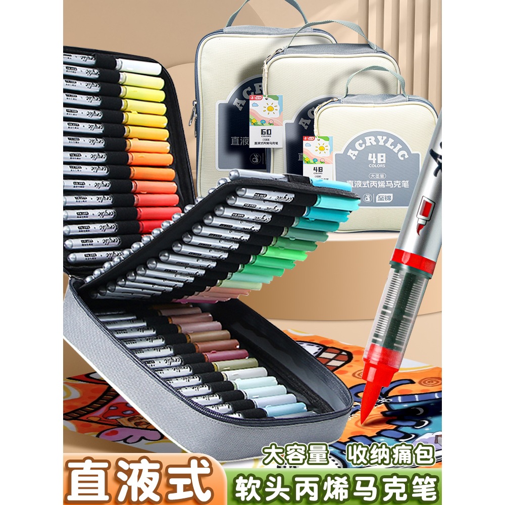 ストレート液体アクリルマーカーペン ソフトヘッド 不透明色 積み重ね可能 子供用アート 120色 小学生絵筆