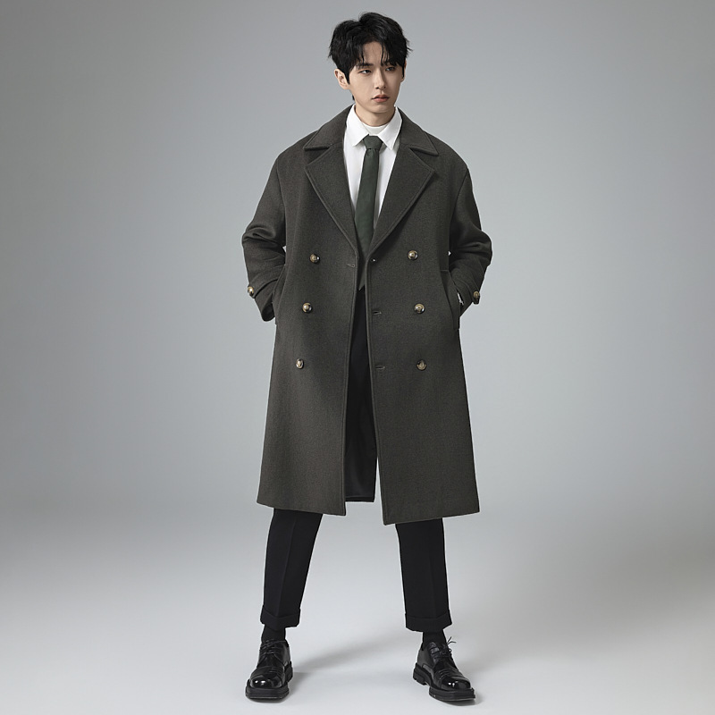 羊毛大衣男长裤过膝冬季加厚休闲大码毛呢上衣男士重磅厚款外套男