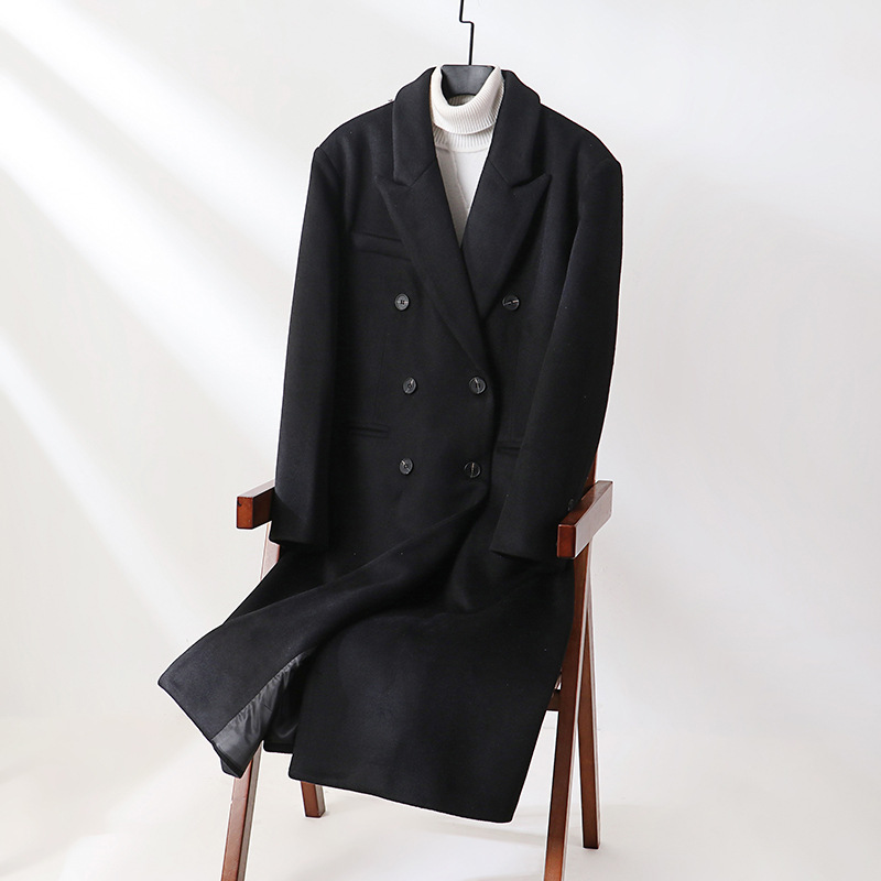 秋冬长款过膝双面羊绒大衣男双排扣韩版西装宽松羊毛呢子风衣外套
