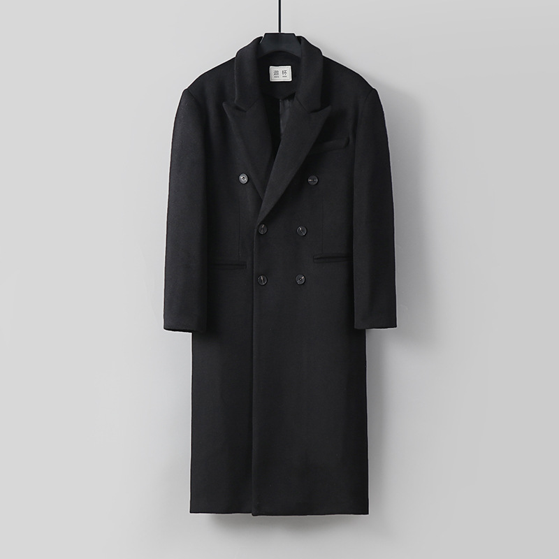 大码冬季加厚款羊毛呢大衣男长款高级感痞帅妮子风衣设计感外套男