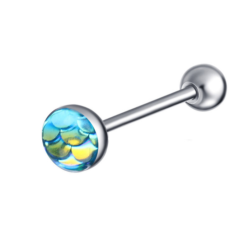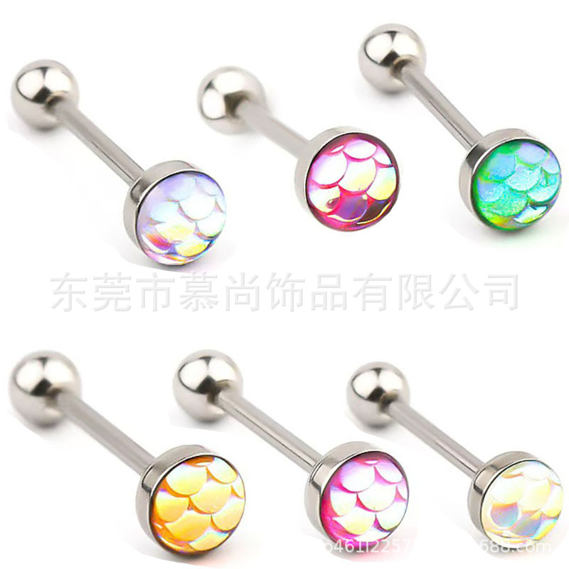 F136钛合金七色鱼鳞滴油舌钉渐变幻彩闪光欧美风甜酷辣妹穿刺饰品