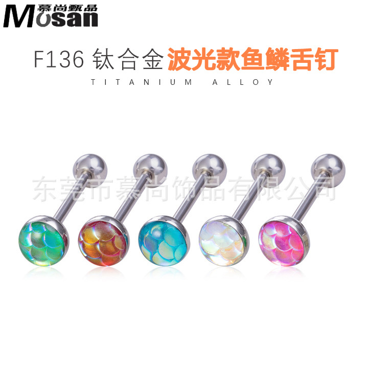 欧美跨境7色鱼鳞滴油舌钉F136钛合金幻彩渐变舌环人体穿刺饰品批