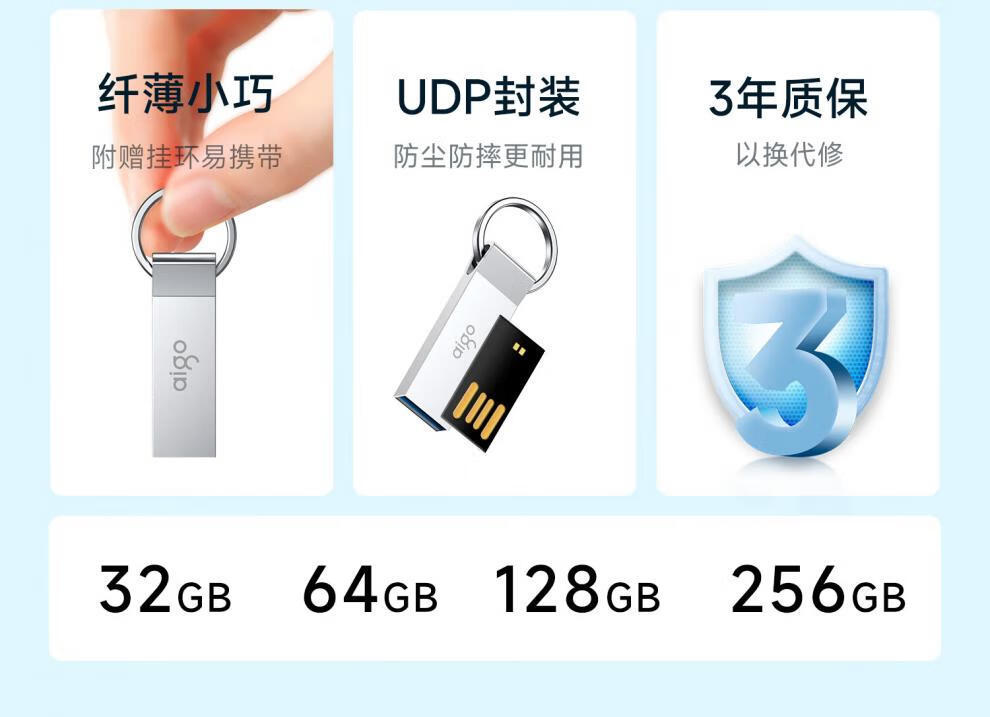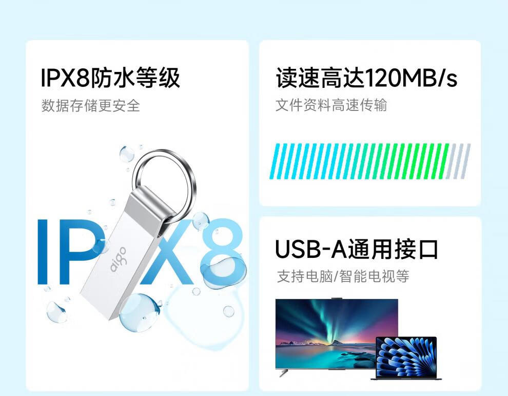 正品(aigo)适用防水U盘金属128G车载高速3.0 U310Pro 爱国者u盘