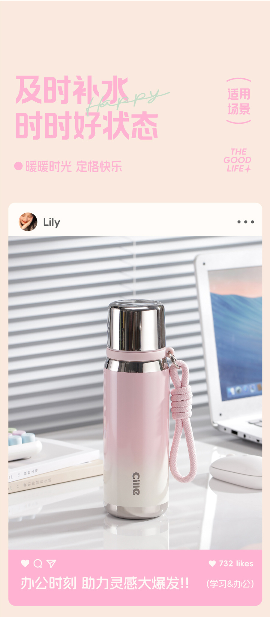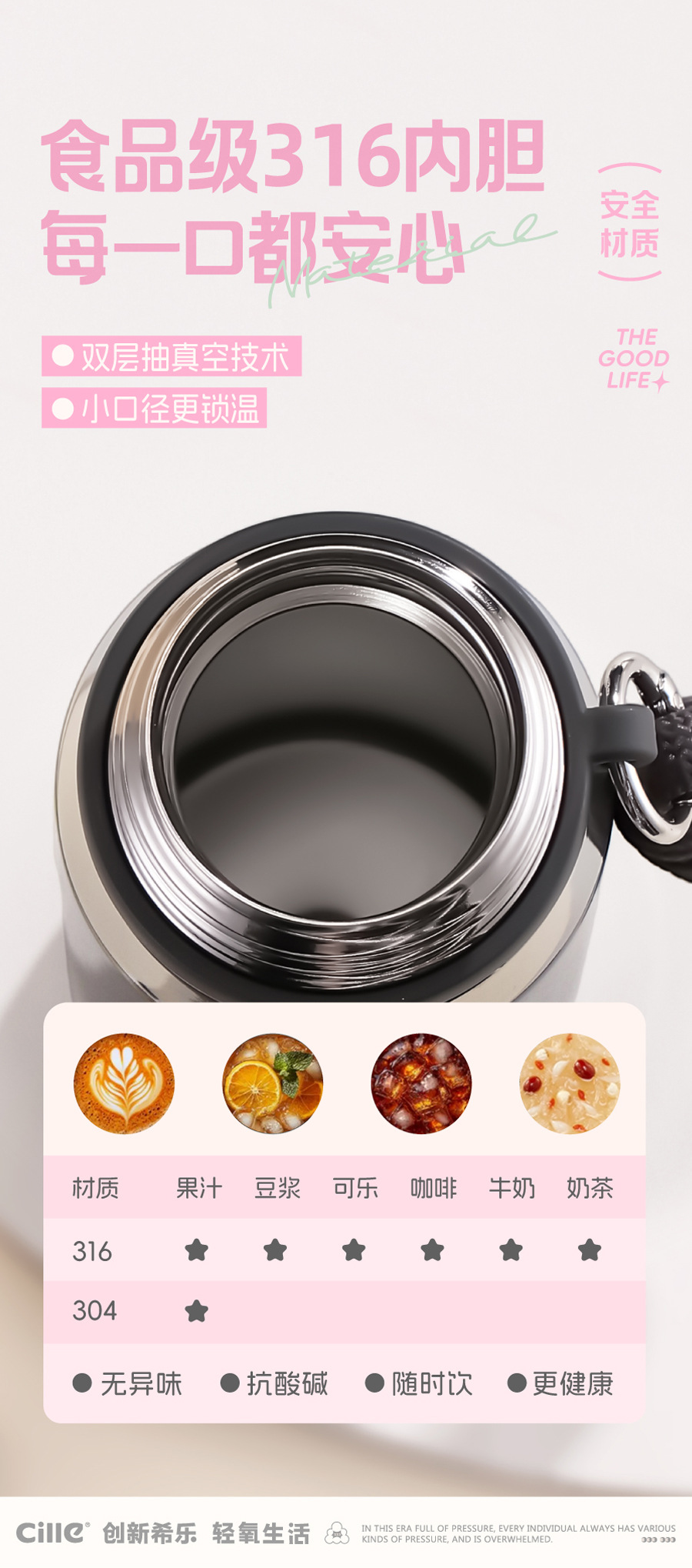 希乐保温杯女新款2025高颜值316不锈钢杯子男学生大容量便携水壶