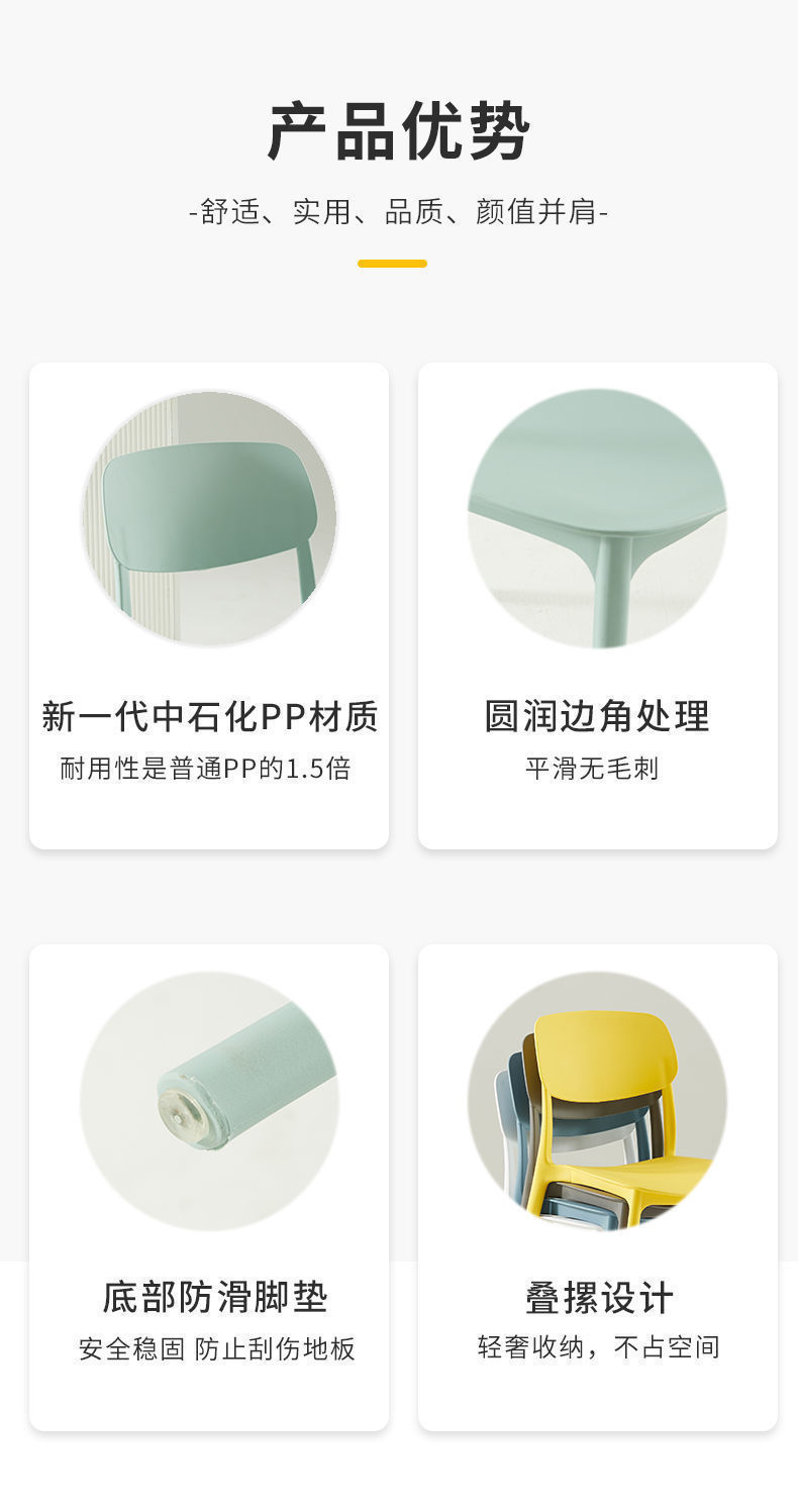 商用凳子靠背北欧加厚塑料椅子舒服久坐家用餐厅餐桌餐椅简约叠放