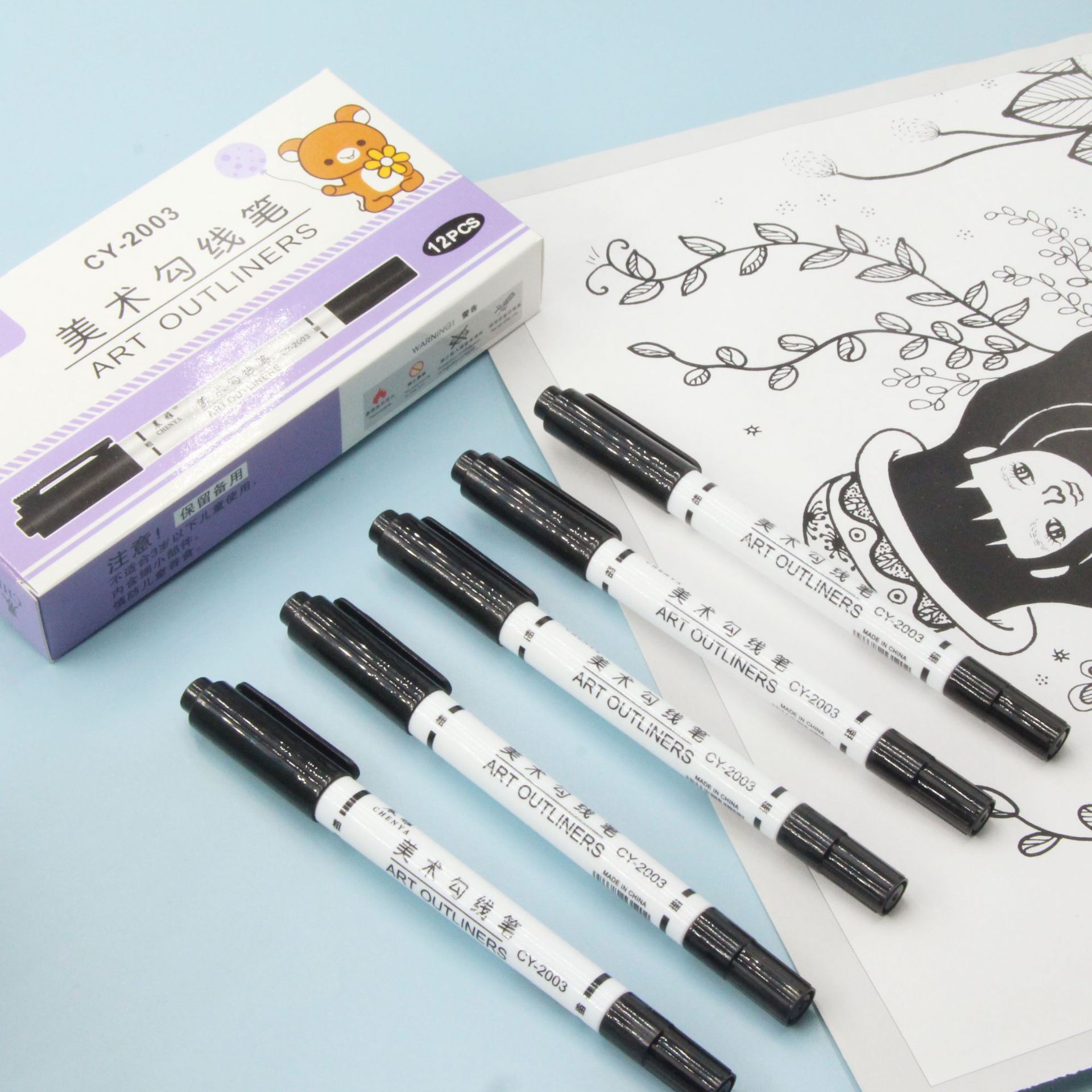 アートフックラインペン子供の絵画黒水性ストロークペン小さな両端マーカー細字学生トレースペン