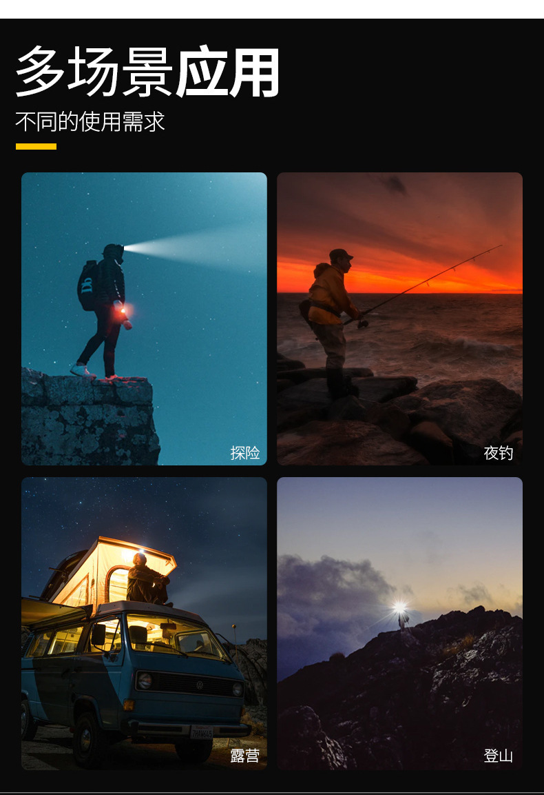 适用环境 潜水,徒步,露营,教学,搜索,日常携带,夜骑,探洞,夜钓,巡逻