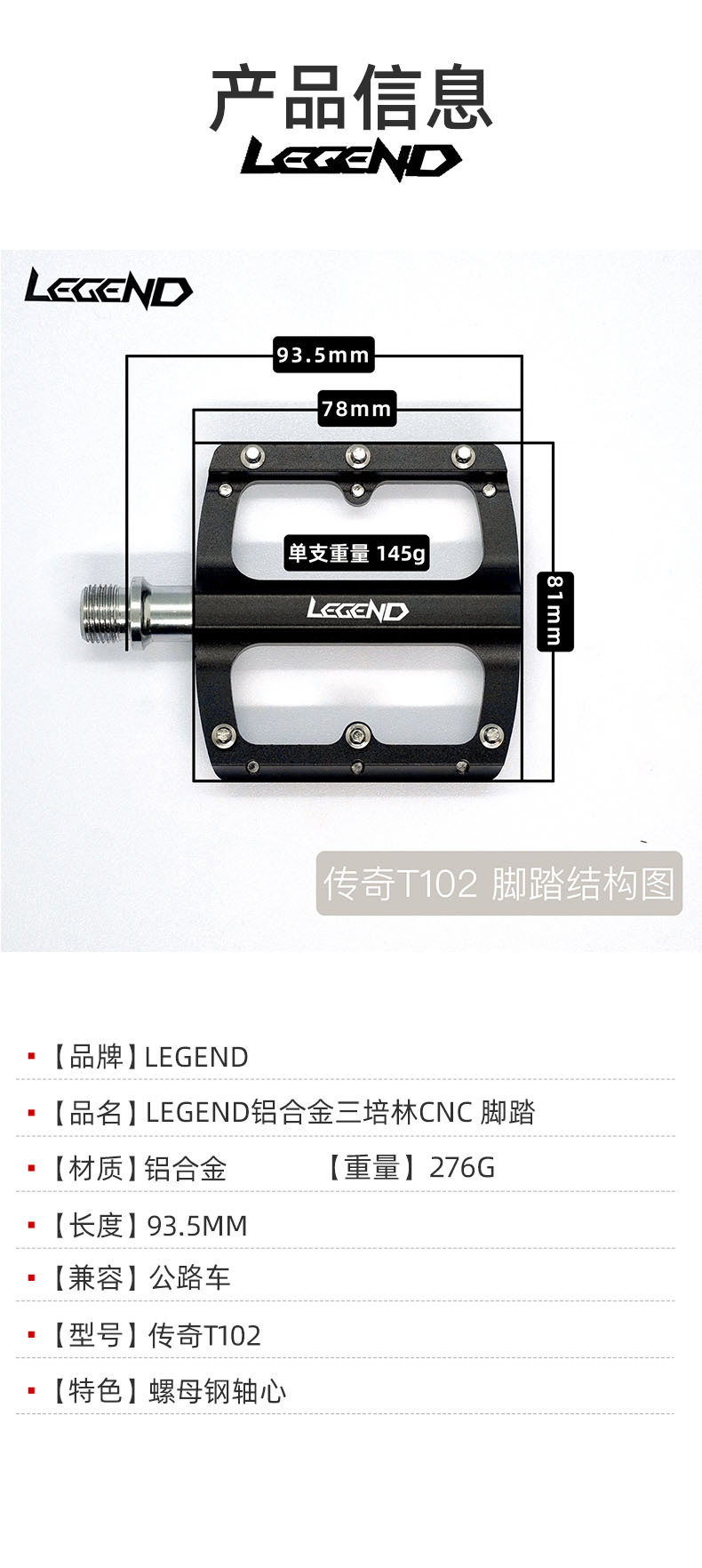 LEGEND公路车脚踏自行车山地铝合金CNC公路超轻培林脚蹬T102