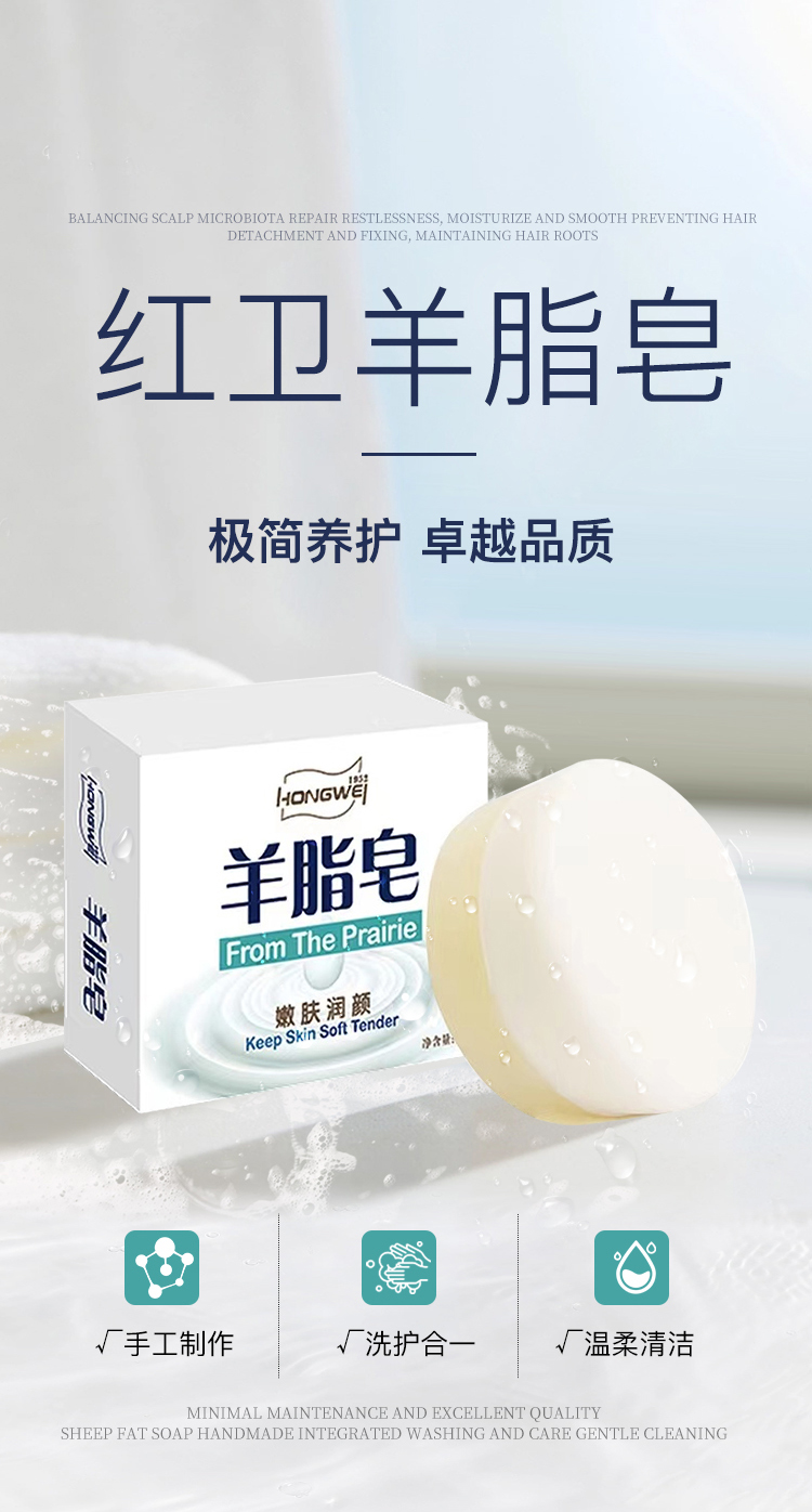 国货红卫羊脂皂嫩肤温和羊脂皂控油润肤洗脸沐浴留香红卫羊奶皂