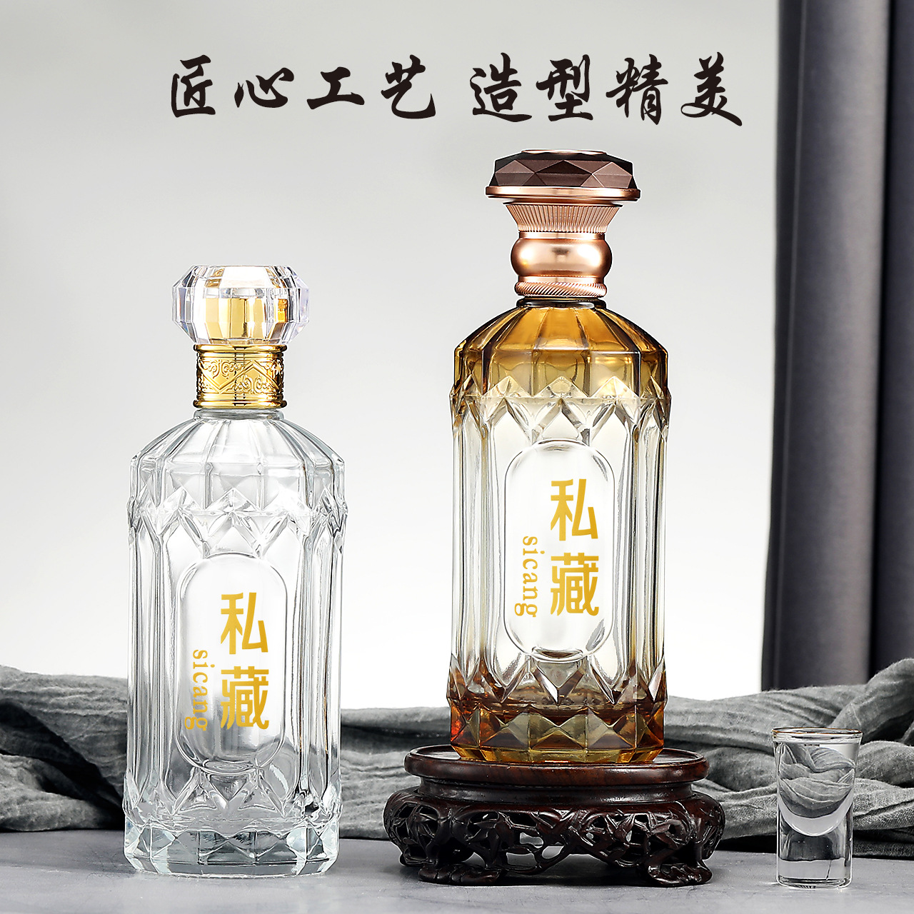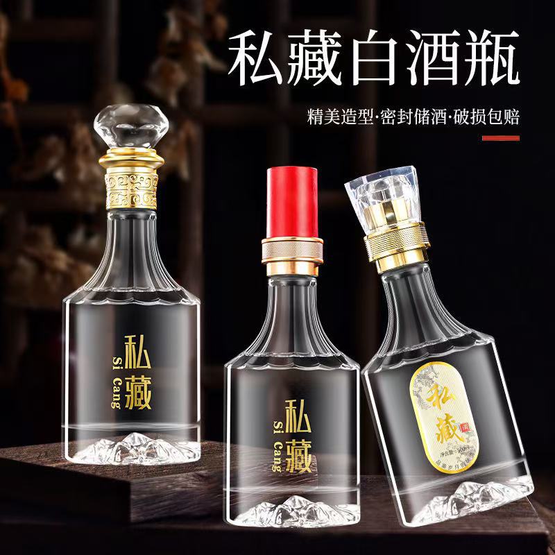 0.5kg パッククリスタルホワイト素材の酒瓶空ボトルハイエンド高価値密封された厚いガラス酒瓶健康酒瓶