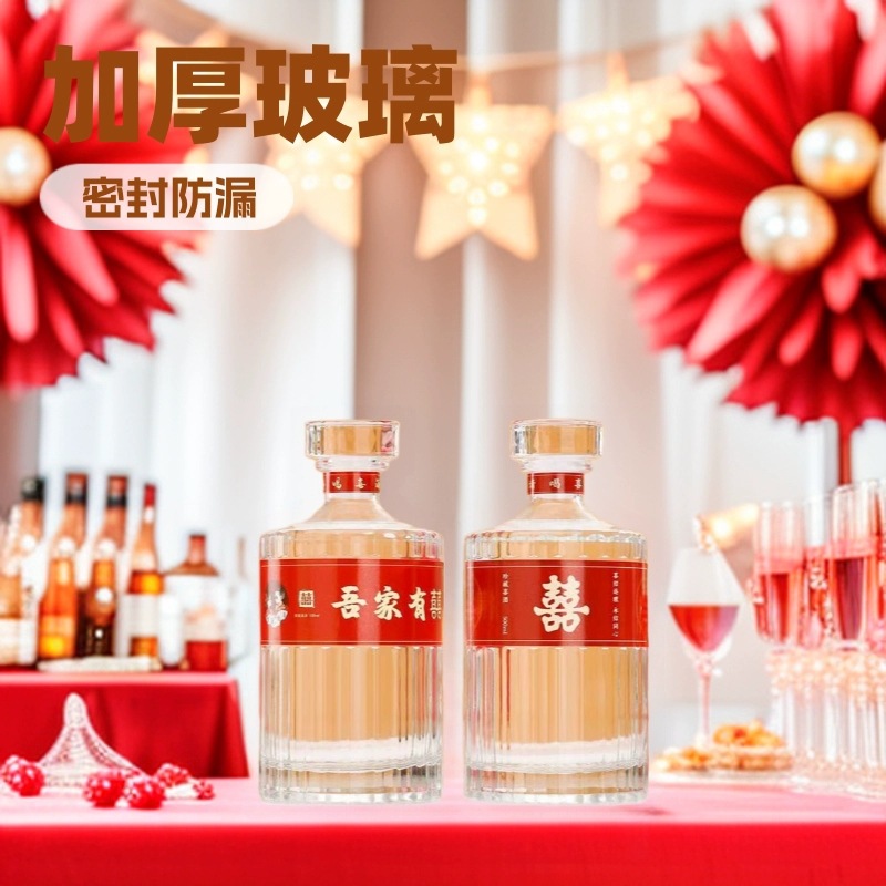 白酒瓶卸売り披露宴喜酒瓶1斤入り透明ガラス果酒瓶セットラベルガラス空瓶
