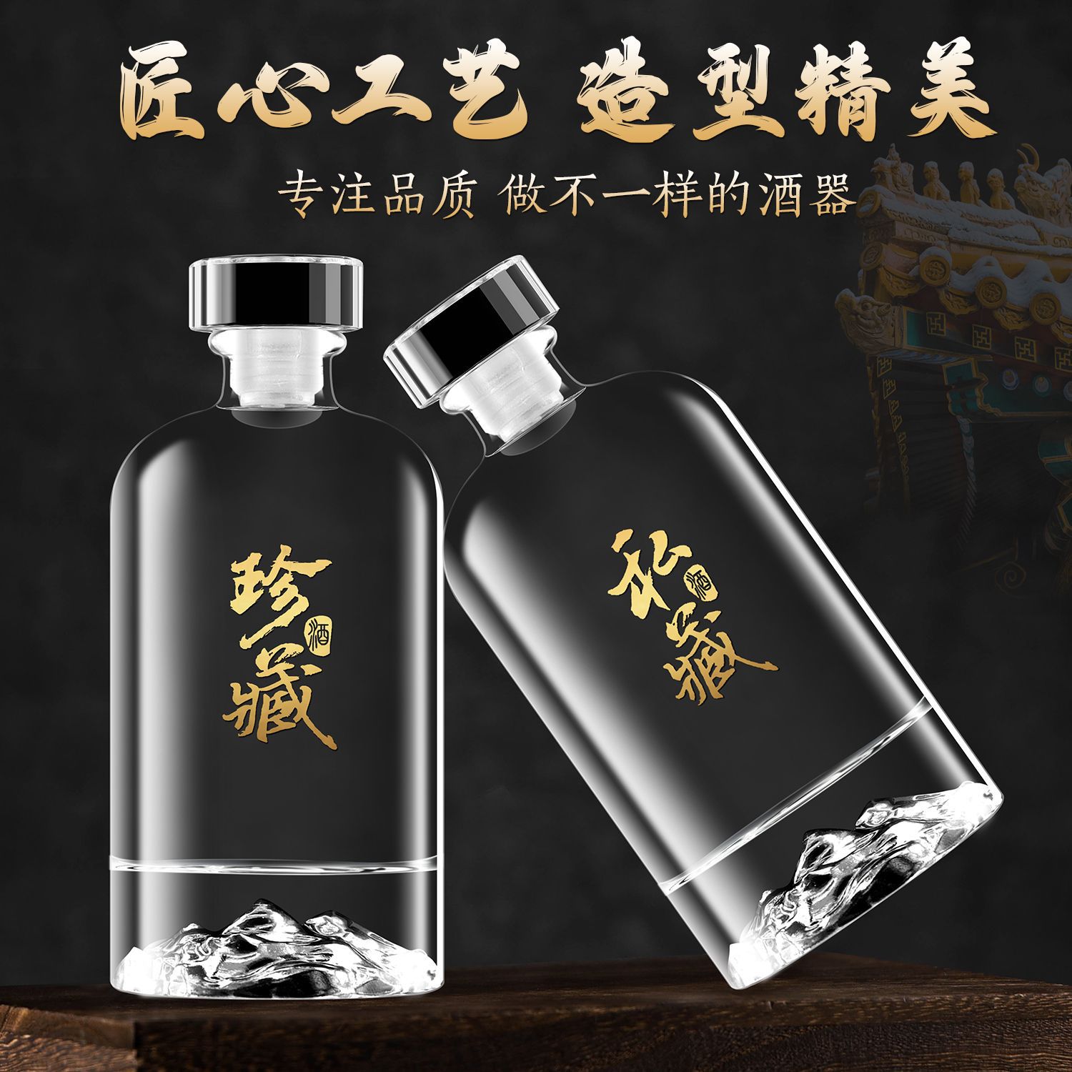 0.5kg個入りクリスタルホワイト素材の山底ガラス製白酒瓶、密封された厚みのある空の白酒瓶、ギフトボックス入り酒瓶包装ギフトボックス