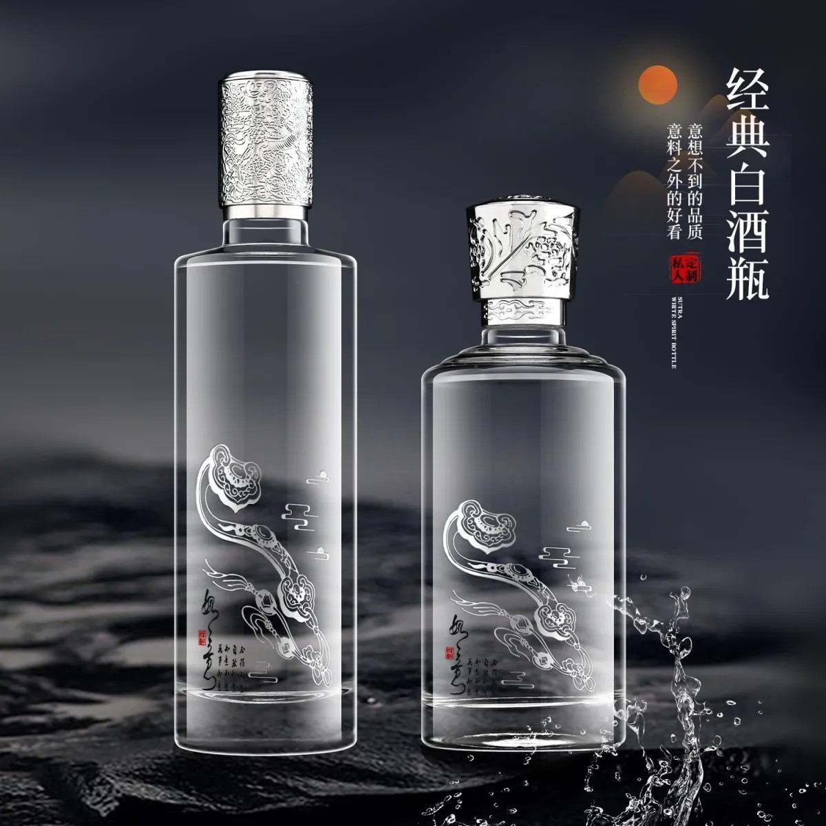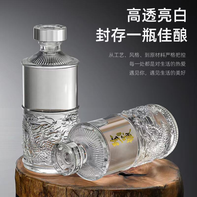 0.5kg パッククリスタルホワイトワインボトル空ボトルハイエンドワインボトルエンボスドラゴンパターン高価値密封肥厚空ワインボトル