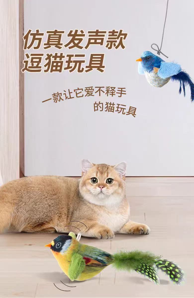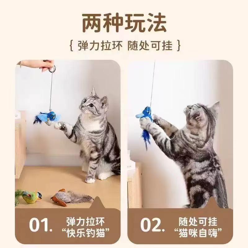 猫玩具仿真叫叫鸟发声逗猫棒幼猫自嗨解闷耐抓现货批发一件代发