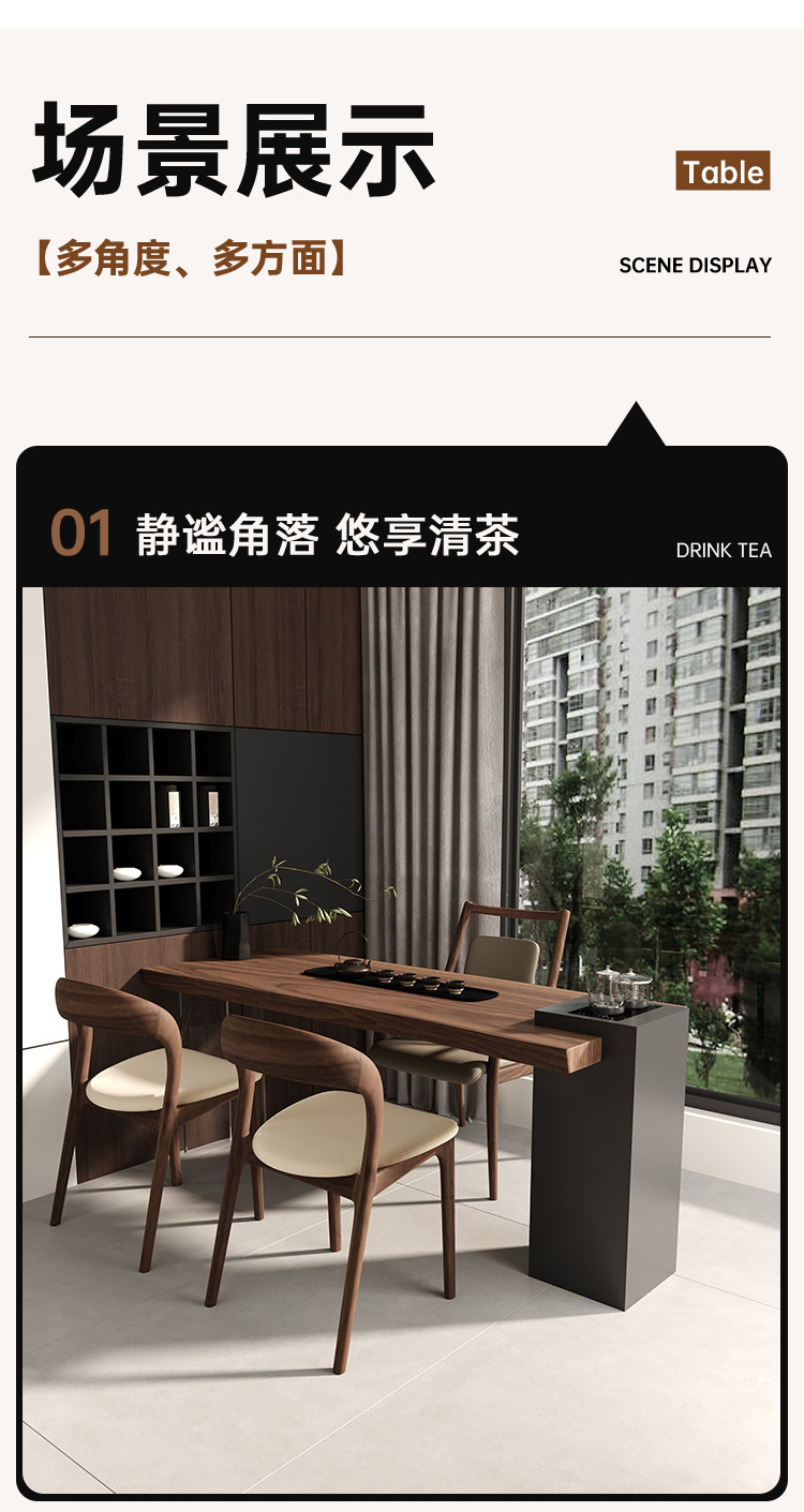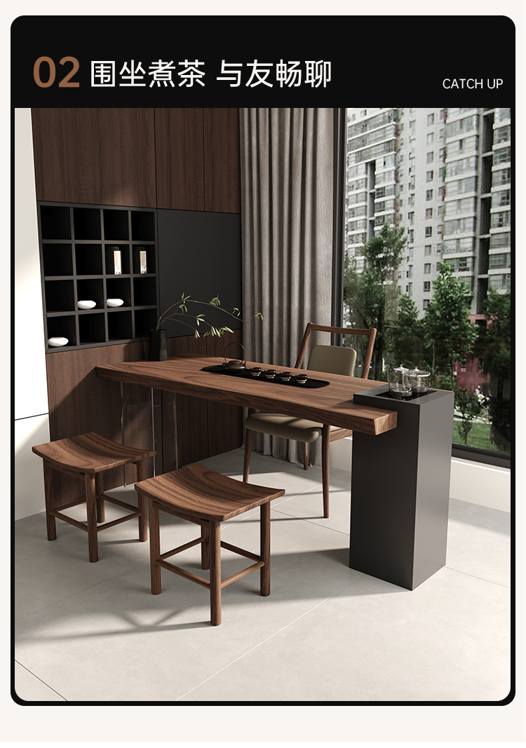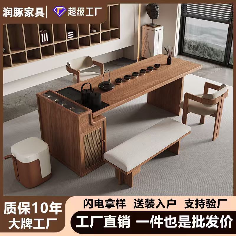 新中式宋代美学胡桃木岛台办公茶桌椅组合新中式家用客厅泡茶台