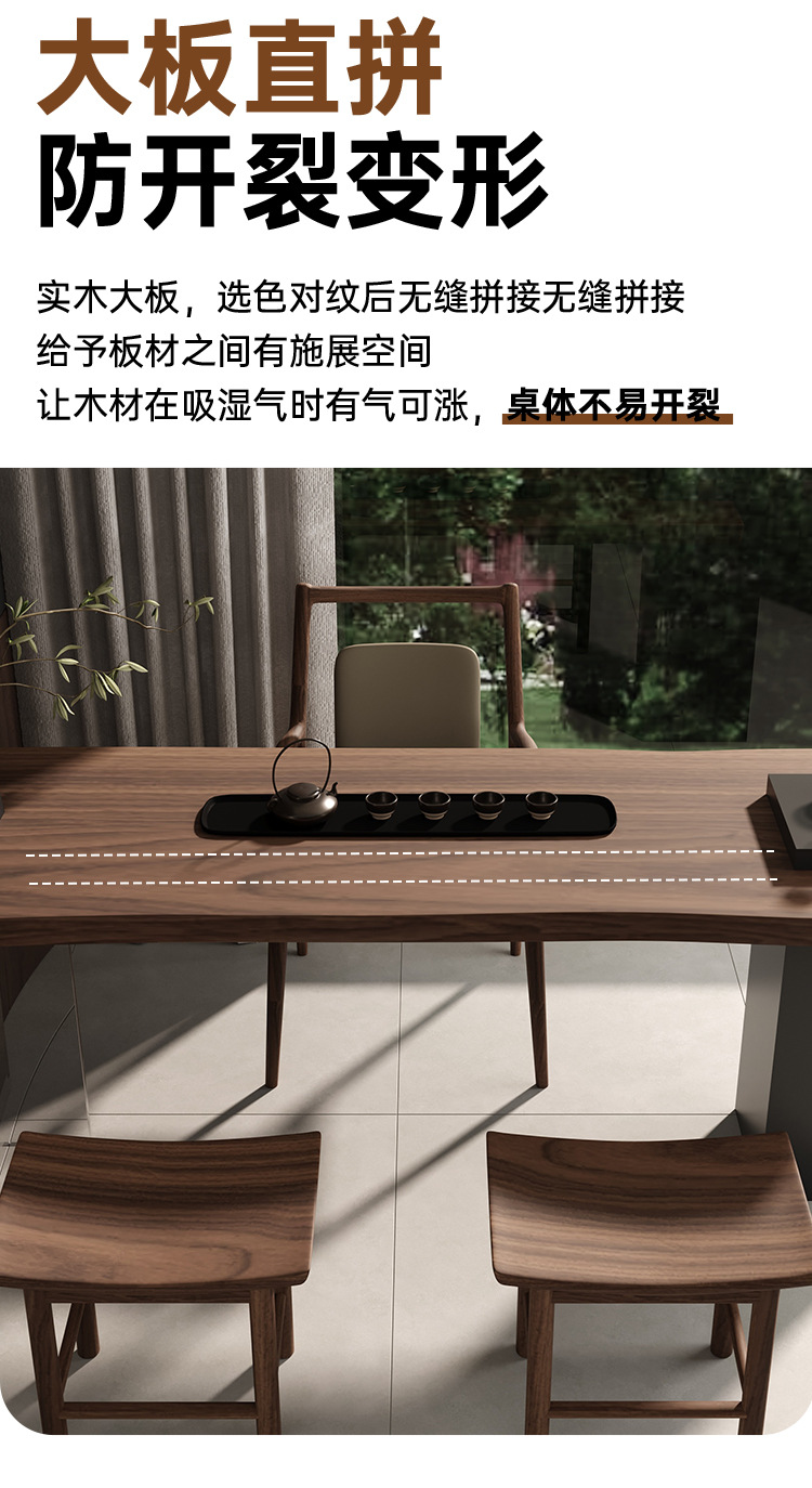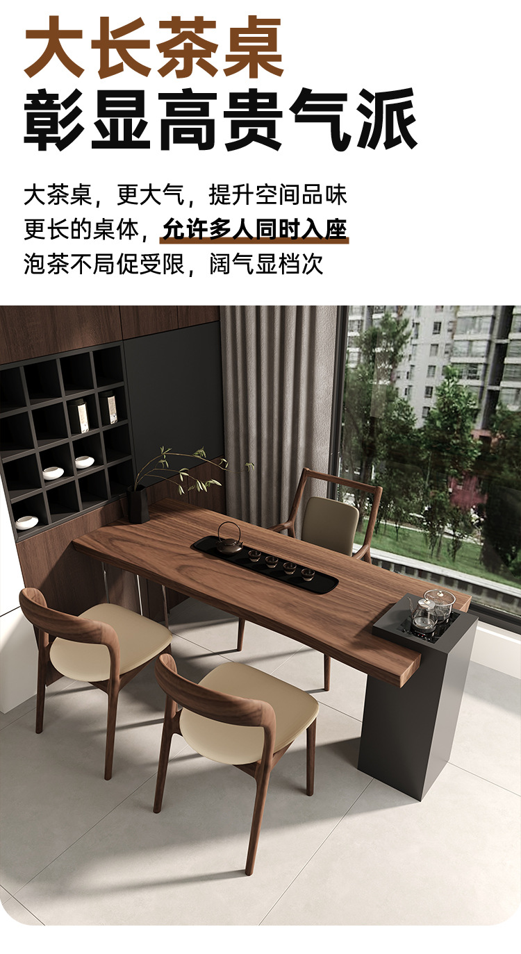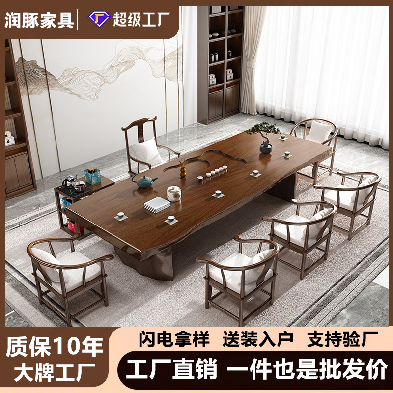 南米クルミ大板ティーテーブルと椅子の組み合わせ新しい中国風のログティーテーブルオフィス引き出しリビングルームティーテーブル