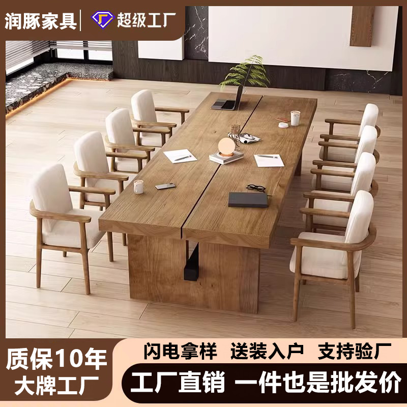 10人用長尺無垢材大型会議テーブルと椅子の組み合わせ、大型ボード、軽くて豪華、モダンで高級感のある研修・交渉用オフィスデスク