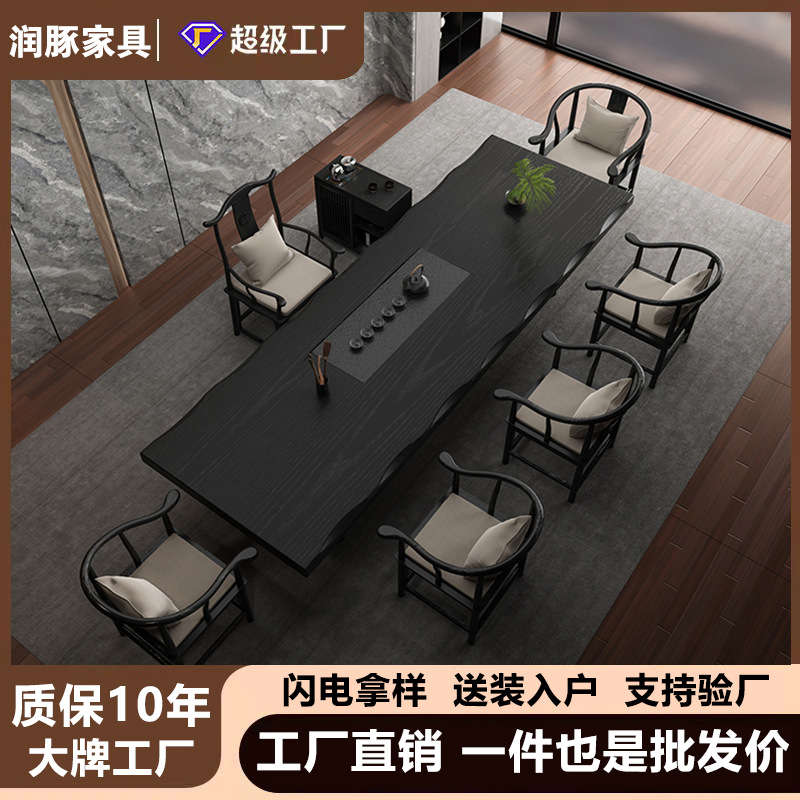 原木大板茶卓新中国式実木泡茶台現代シンプル禅意家庭用茶台オフィス茶テーブル椅子
