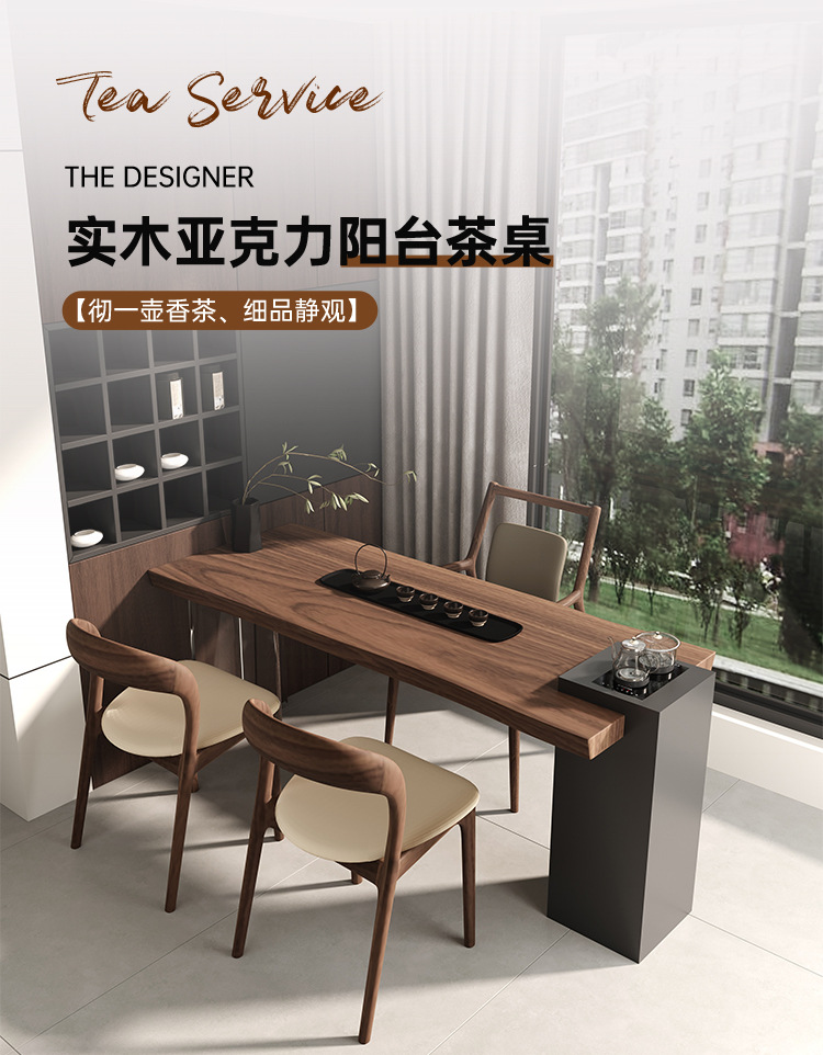新中式オフィス無垢材茶テーブルと椅子セット 家庭用茶台 茶テーブル一体型 バルコニー茶テーブル 無垢材茶テーブル