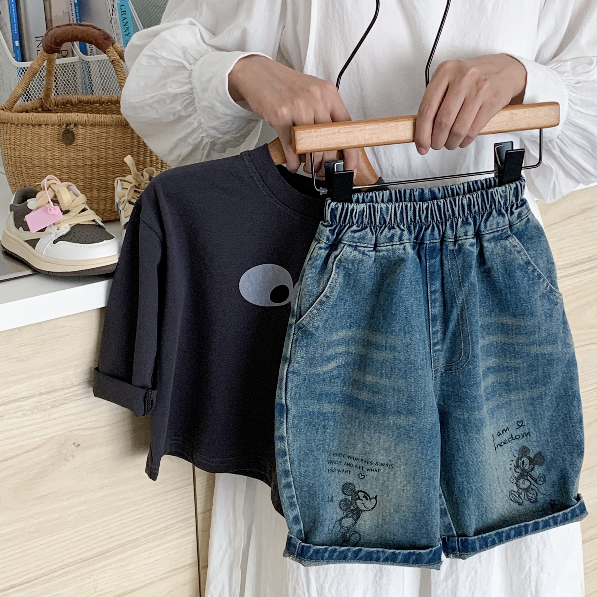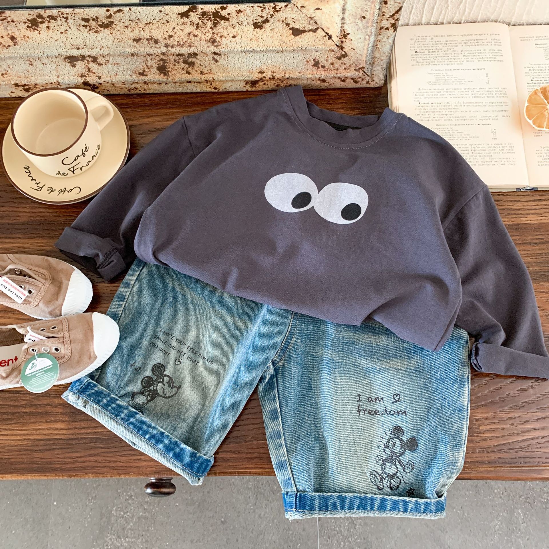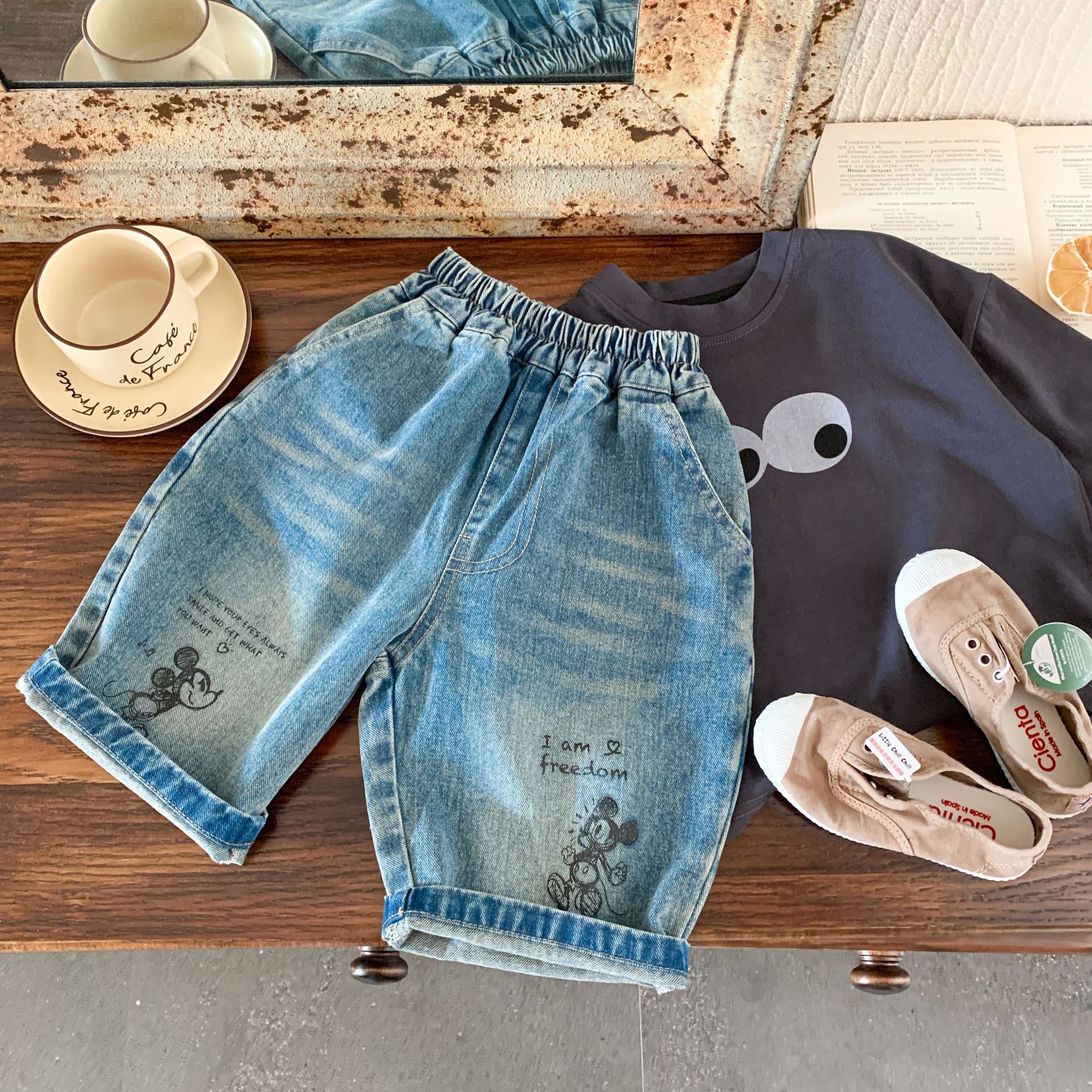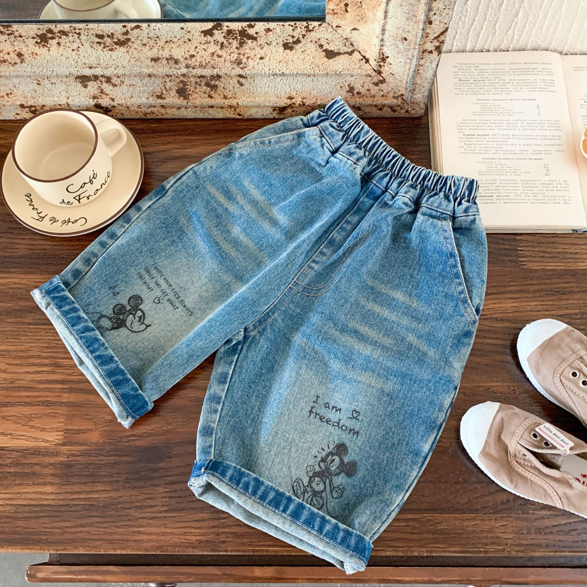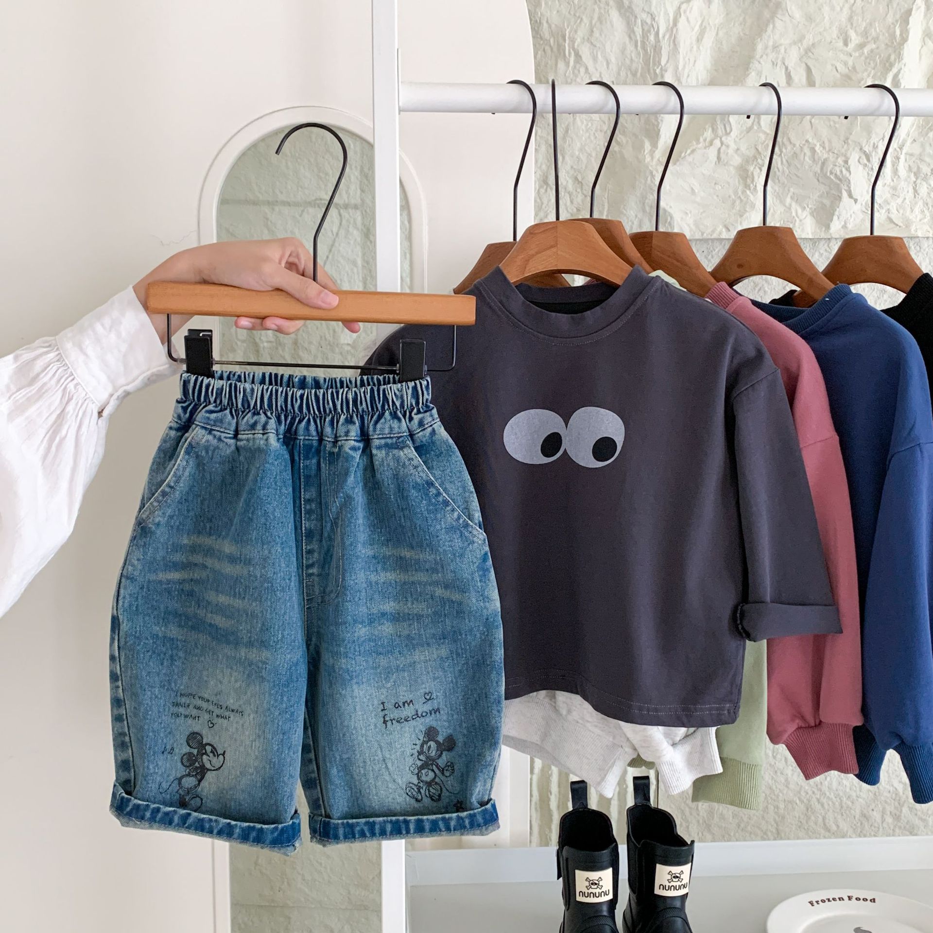 秋季童装儿童洋气牛仔裤男童秋装卡通印花长裤男宝宝韩系直筒裤子