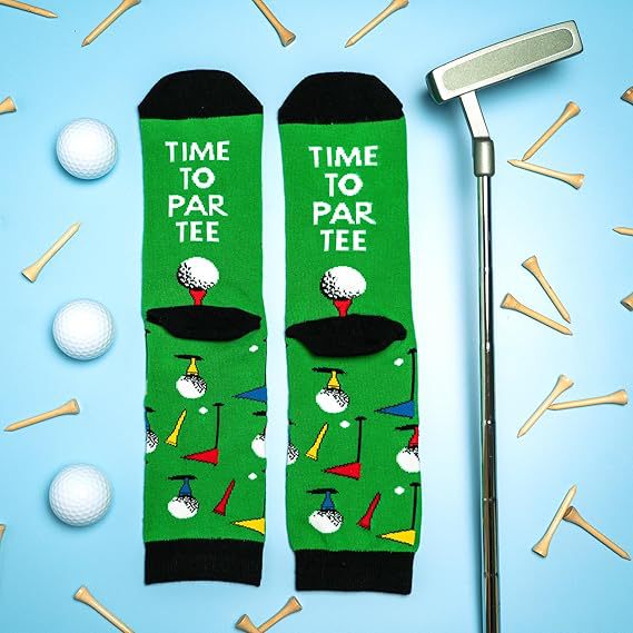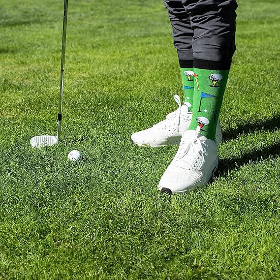 跨境亚马逊绿色旗帜高尔夫英文脚底字母图案趣味礼物中筒袜子运动