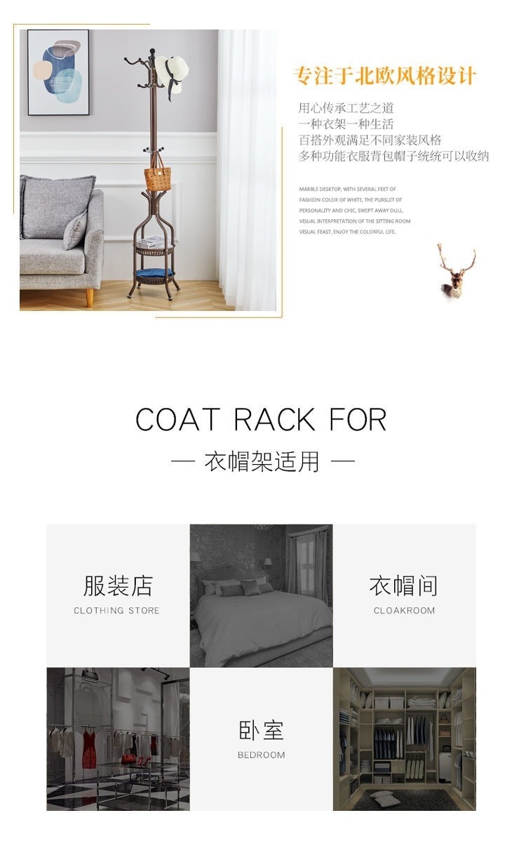 衣帽架落地卧室挂衣架简约现代立式网红衣服架子家用客厅挂包架子
