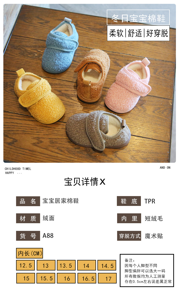 冬季新款宝宝室内鞋软底居家鞋婴幼儿棉拖鞋包根毛毛保暖鞋儿童鞋
