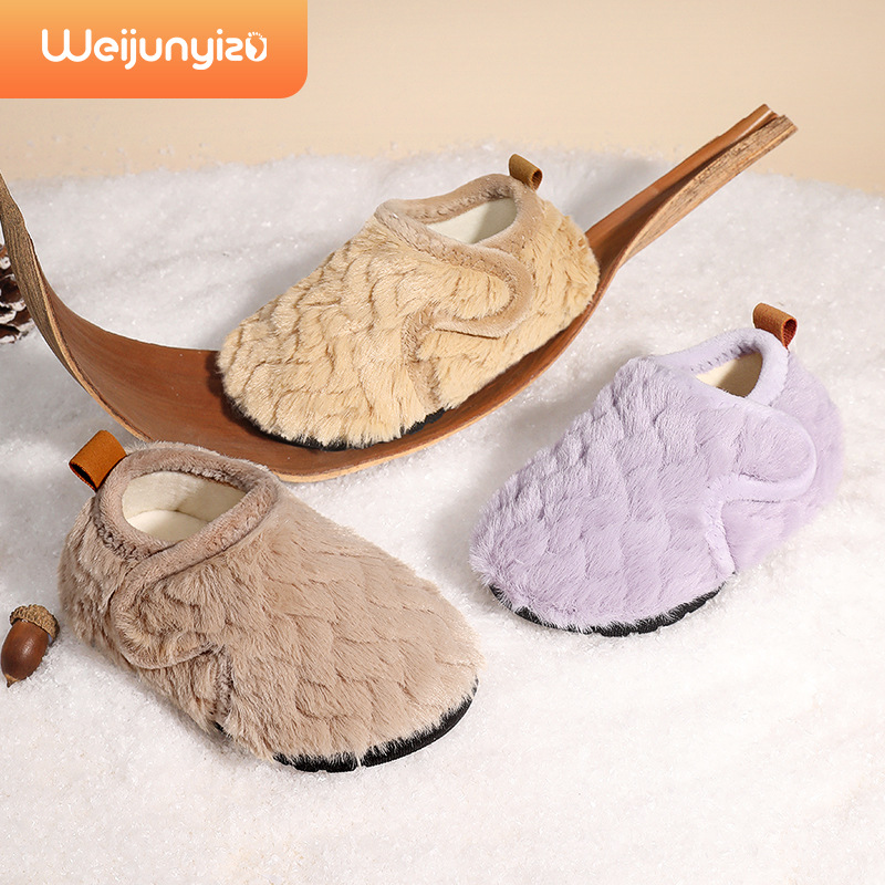 冬季儿童棉拖鞋男女童保暖防滑加绒魔术贴包跟中小童宝宝外穿棉鞋