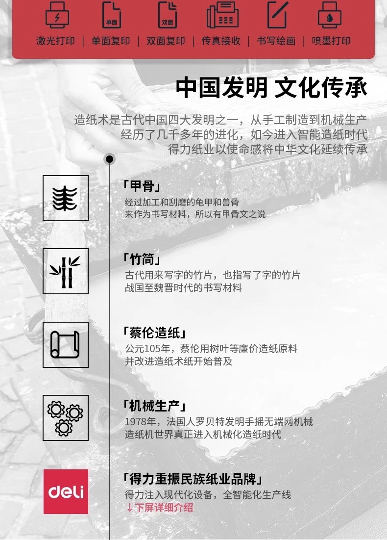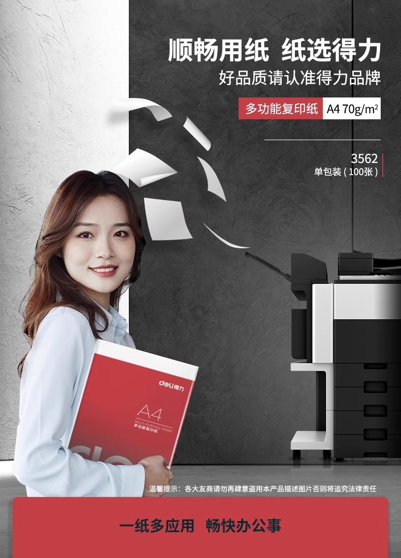 得力3562多功能复印纸打印纸70克/100张学生草稿纸双面打印用纸