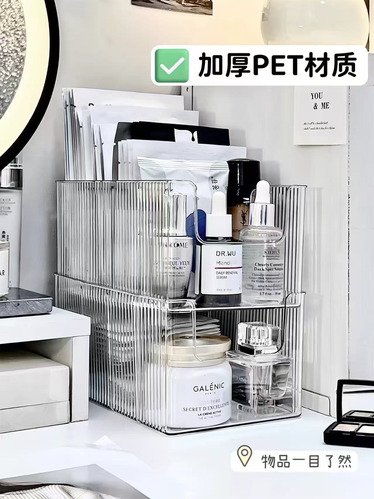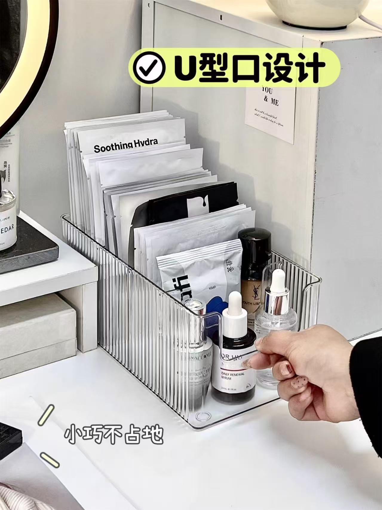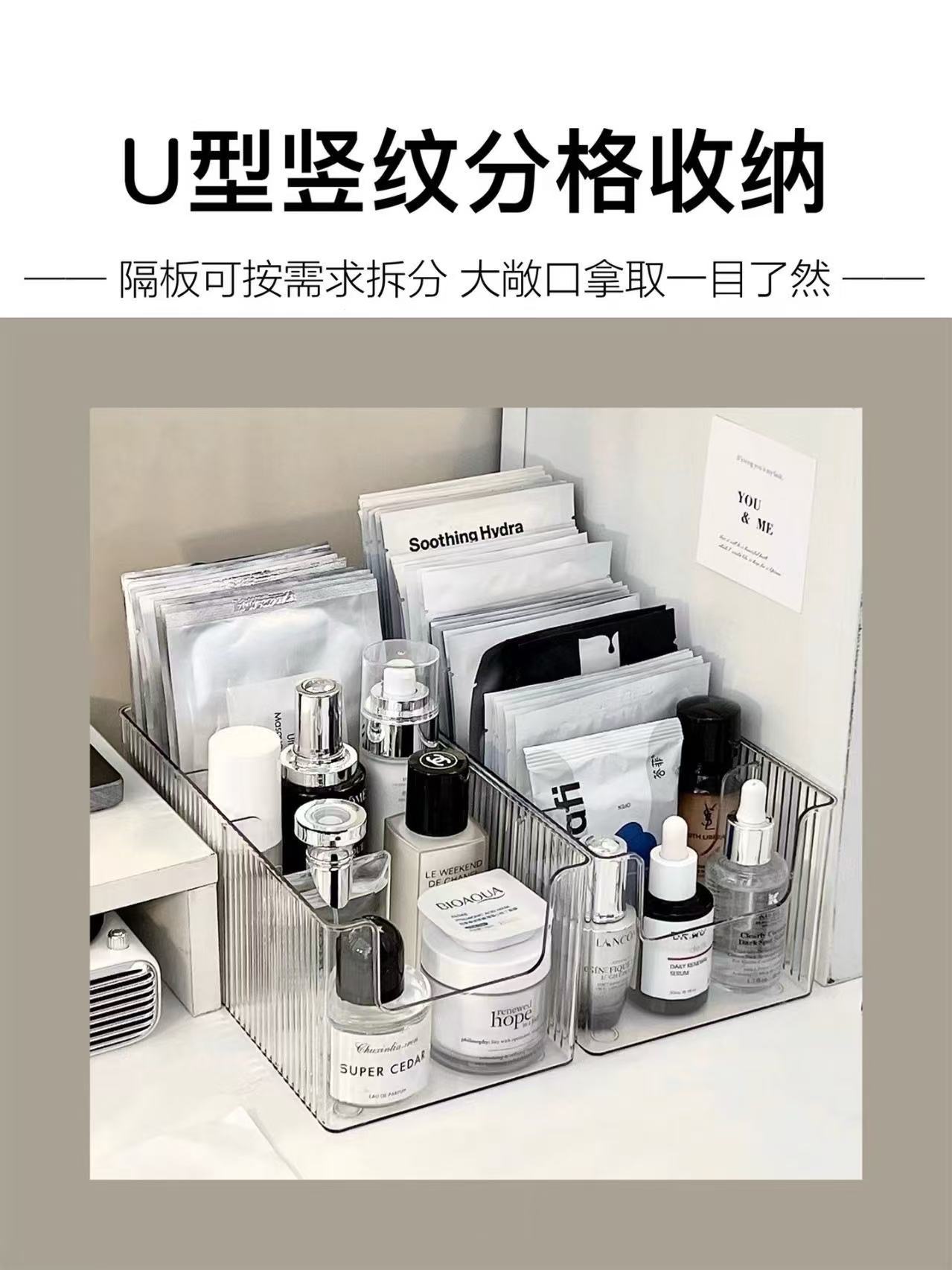 卓上化粧台用透明コスメ・スキンケア用品収納仕切りボックス、フェイシャルマスク収納ボックス、透明収納ボックス