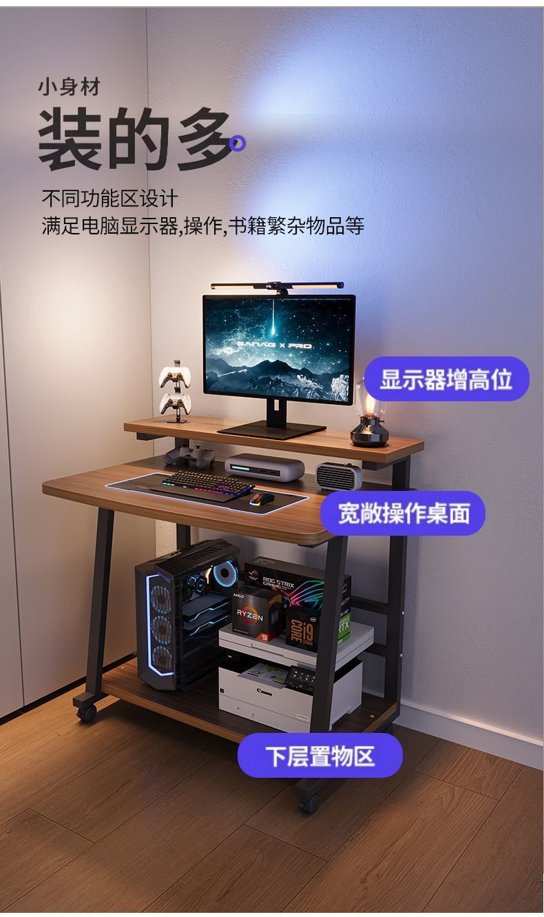台式电脑桌小型家用迷你移动学习笔记本桌子简易带轮子卧室床边桌