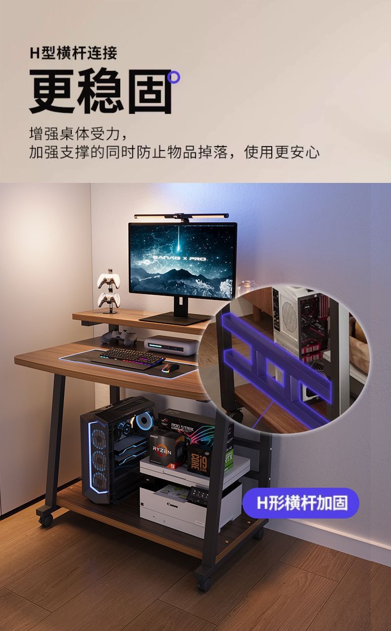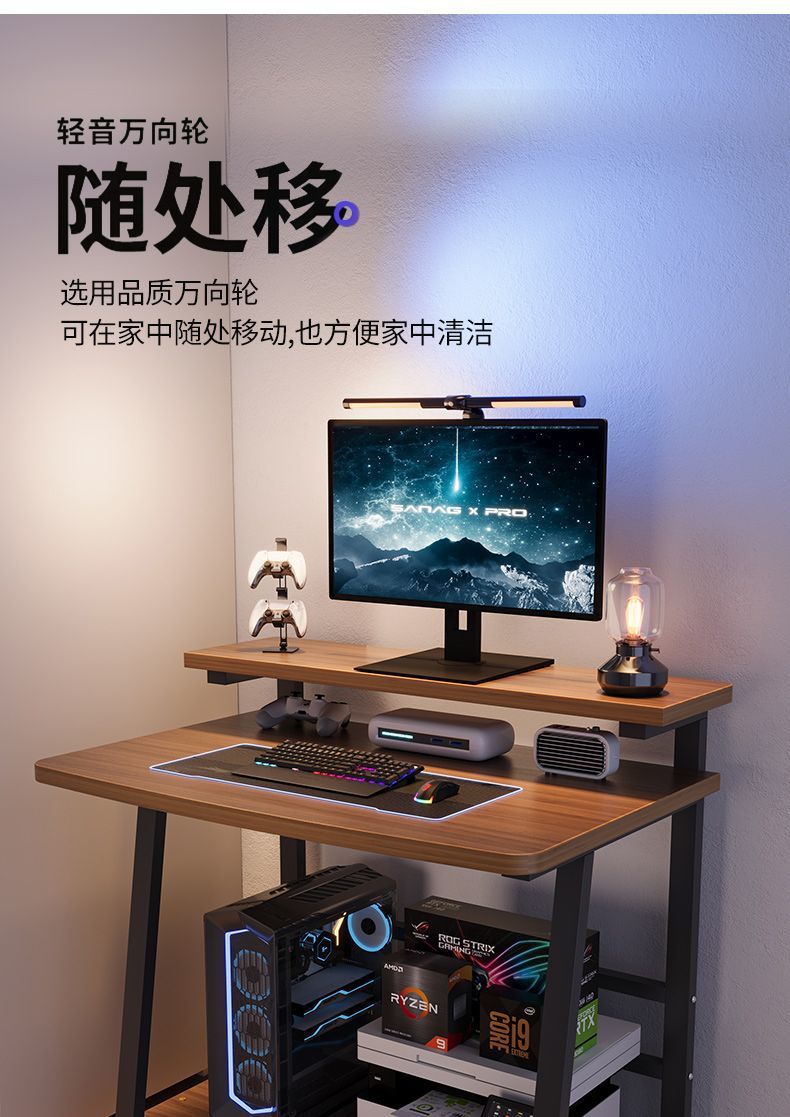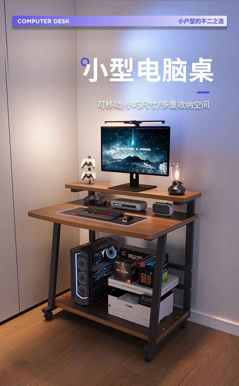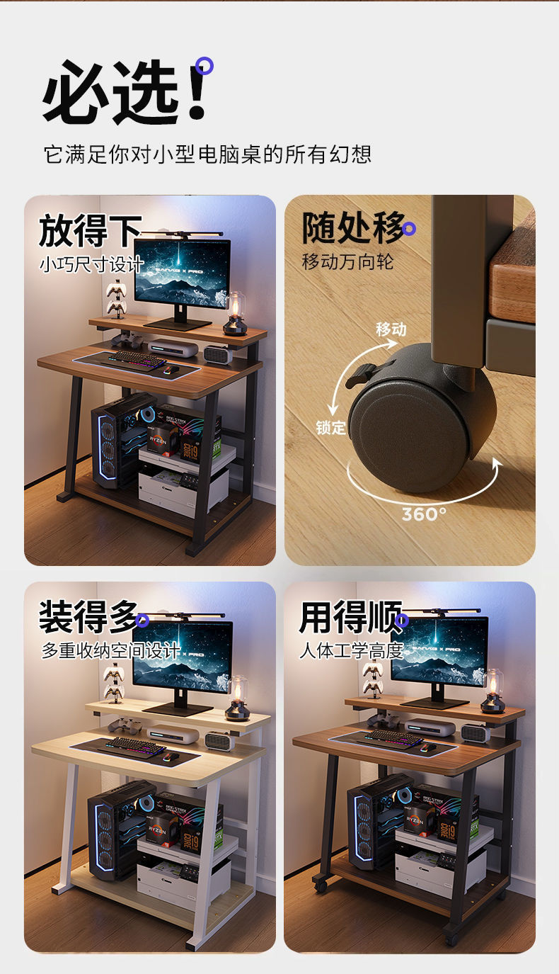 コンピューターデスク、小型家庭用デスクトップ、可動式ゲーミングデスク、シングル、大容量デスク、小さなアパートの寝室のベッドサイドテーブル