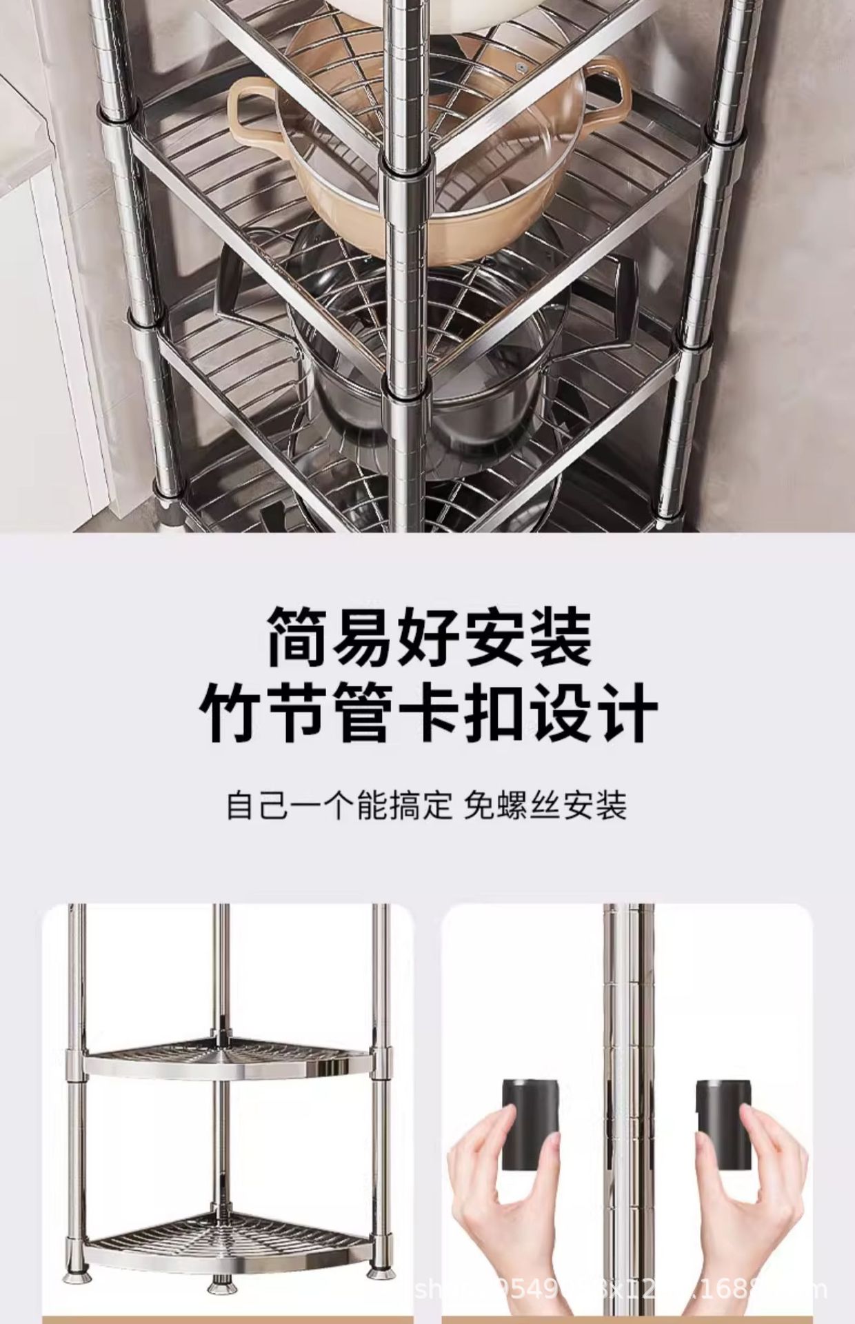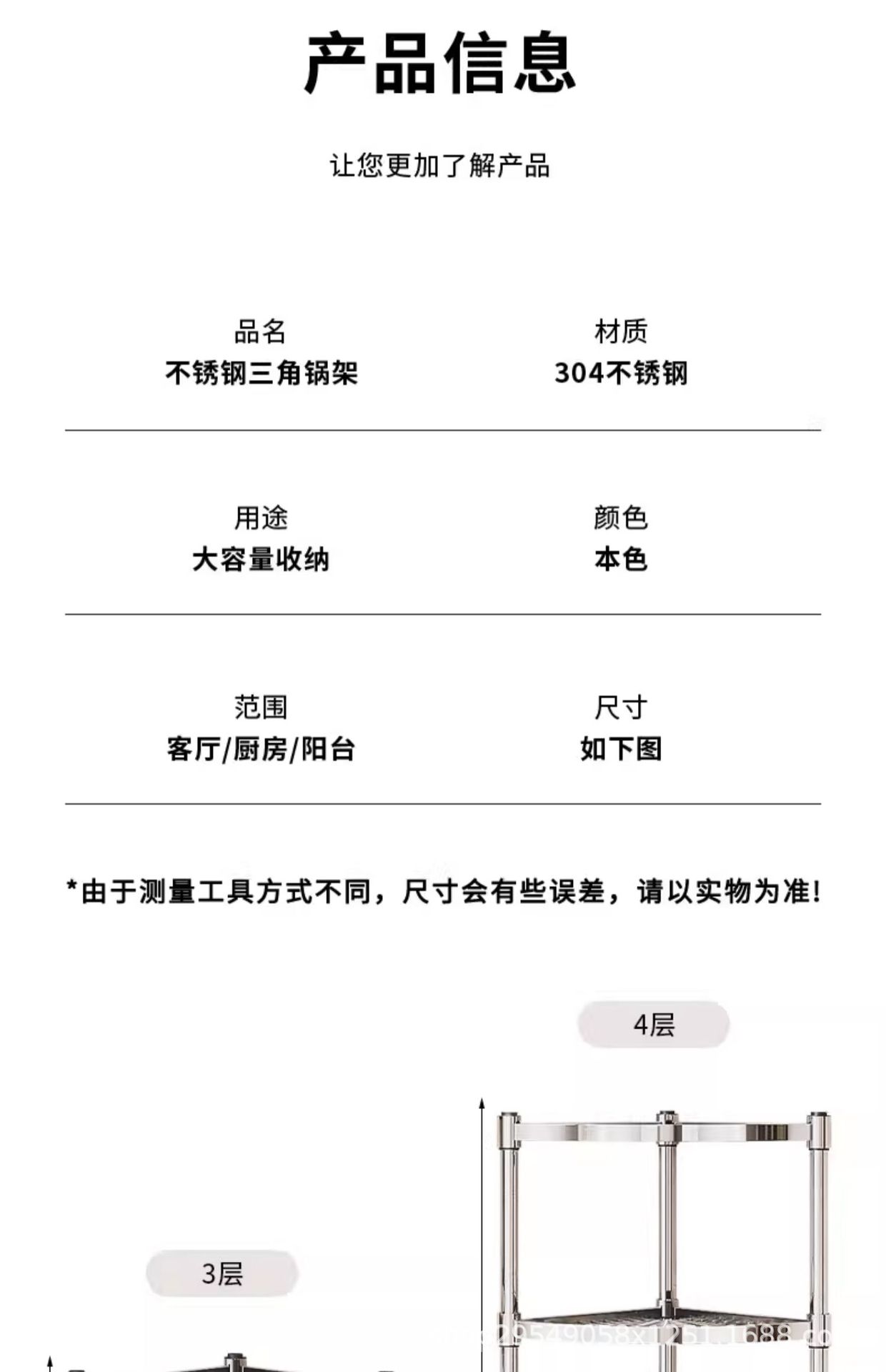 304ステンレスキッチンテーブルのコーナーホルダー多機能鍋具三角多層収納棚階層鍋棚