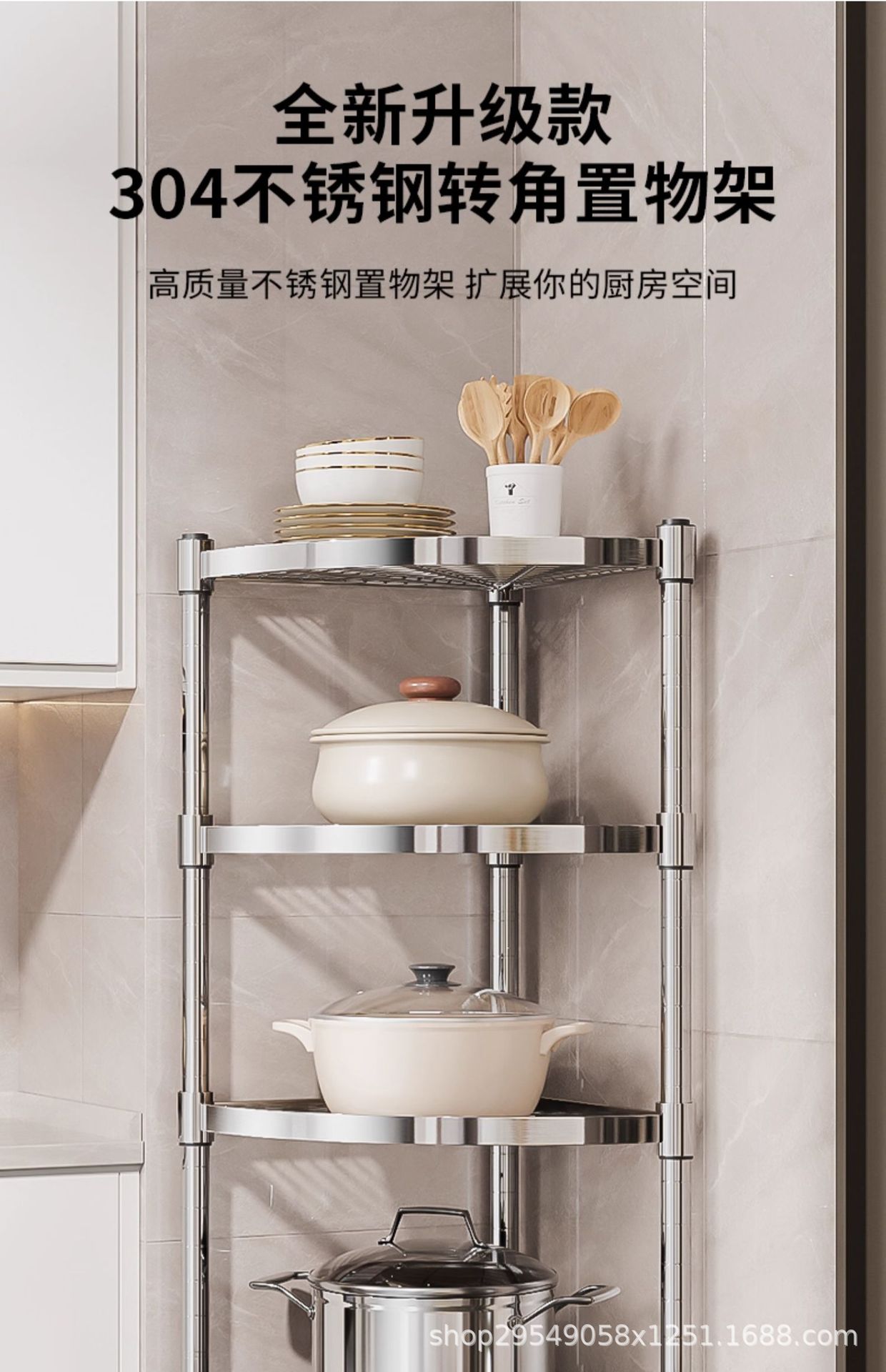 304ステンレス鋼コーナーラック鍋ラック物置ラック厨房壁コーナーラック三角形床置きコーナー収納ラック厚い