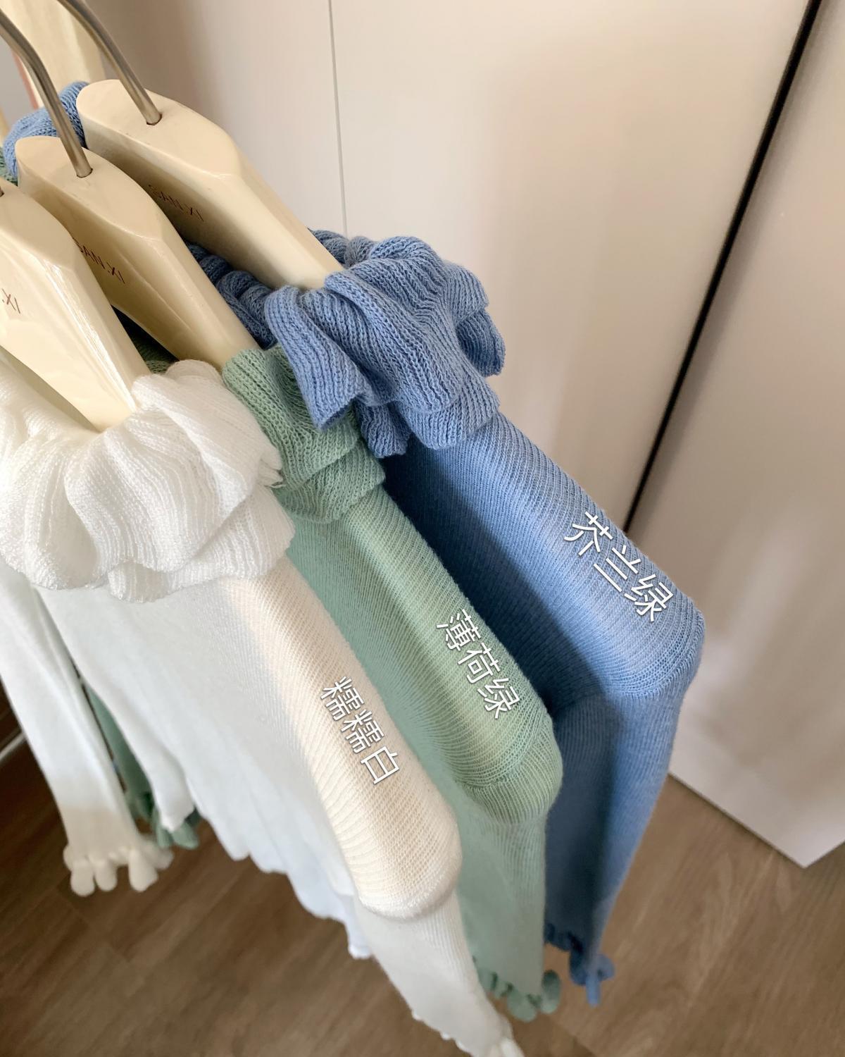 荷叶花边半高领针织打底衫女早秋季设计感绝美内搭可外穿上衣