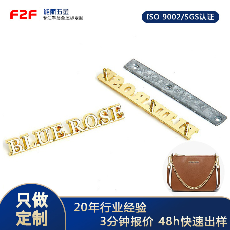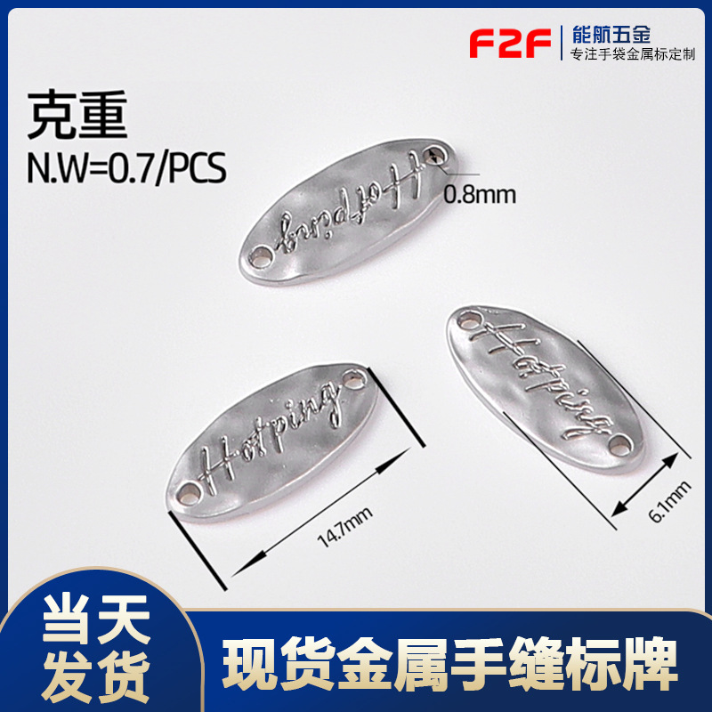服装logo金属标有孔五金标牌LOGO缝线字母标 箱包手袋锌合金标牌