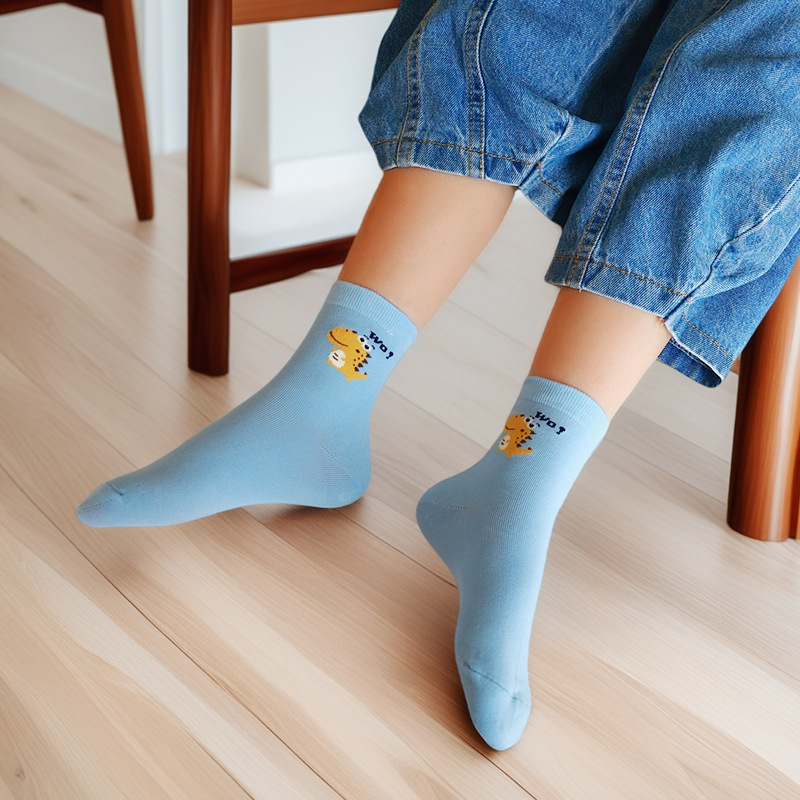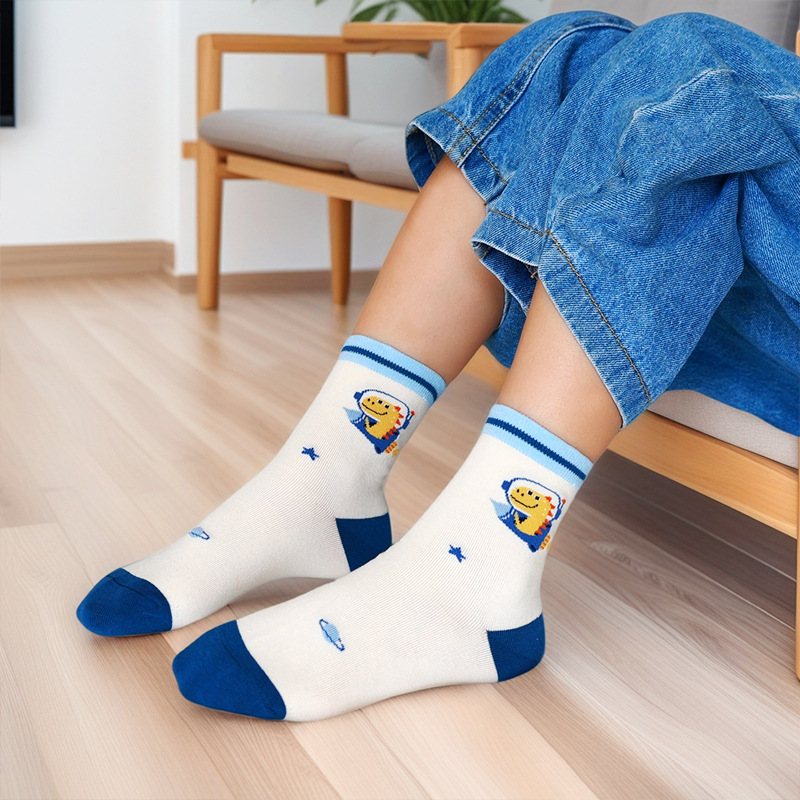 厂家批发儿童袜子春秋季卡通可爱小恐龙精梳棉男童潮范学生中筒袜