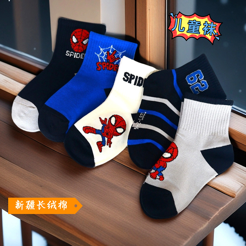 厂家批发儿童袜子男童卡通动漫学生宝宝精梳棉秋冬季潮流中筒袜