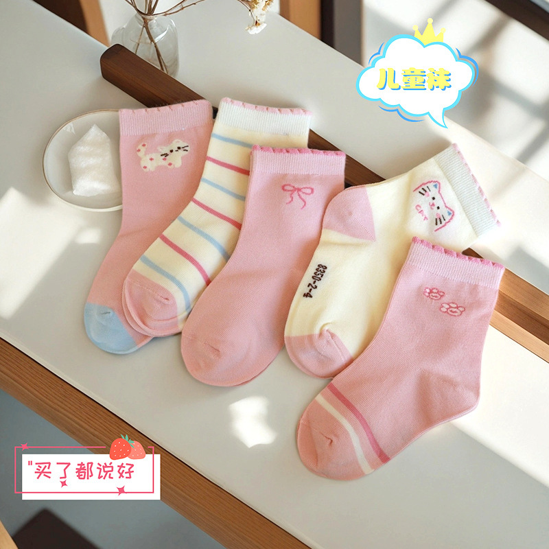 卸売 2025 愛カチカチ秋と冬の子供の靴下漫画かわいいピンク女子学生ベビーミッドチューブソックス