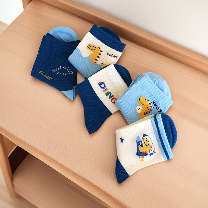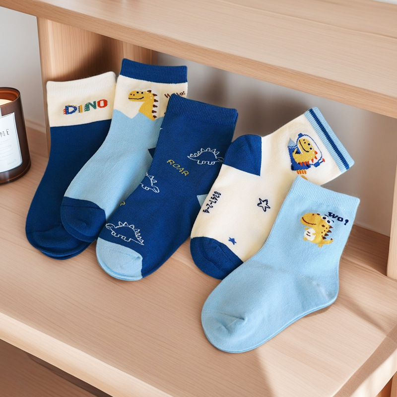 卸売愛カチカチ秋と冬の新しい子供の靴下少年漫画小さな恐竜コーマ綿学生ベビーミッドチューブソックス