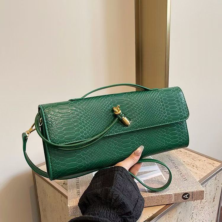斜挎包蛇纹手拿包横款轻奢小方包手提单肩包小众晚宴法棍单肩女包