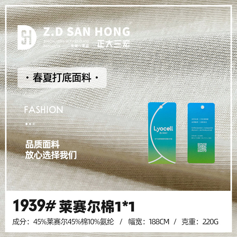 220gリヨセル生地 リヨセル繊維1*1リブ 夏用涼感リブTシャツベースレイヤー生地