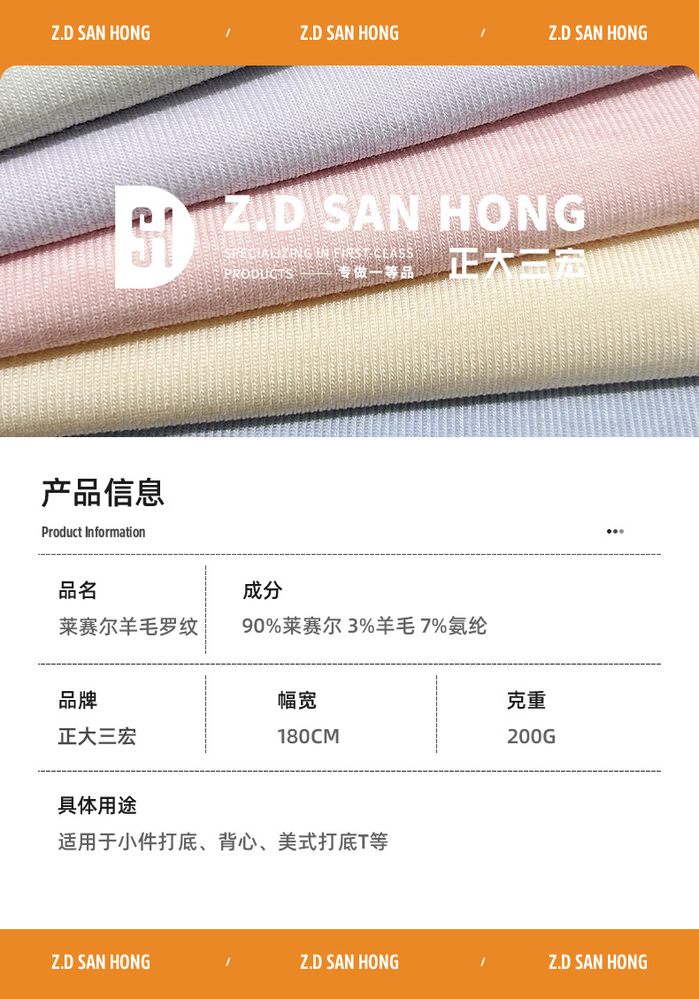 成分及含量 90%莱赛尔3%羊毛7%氨纶