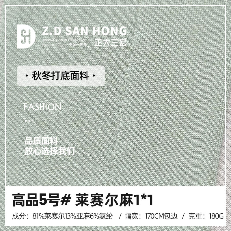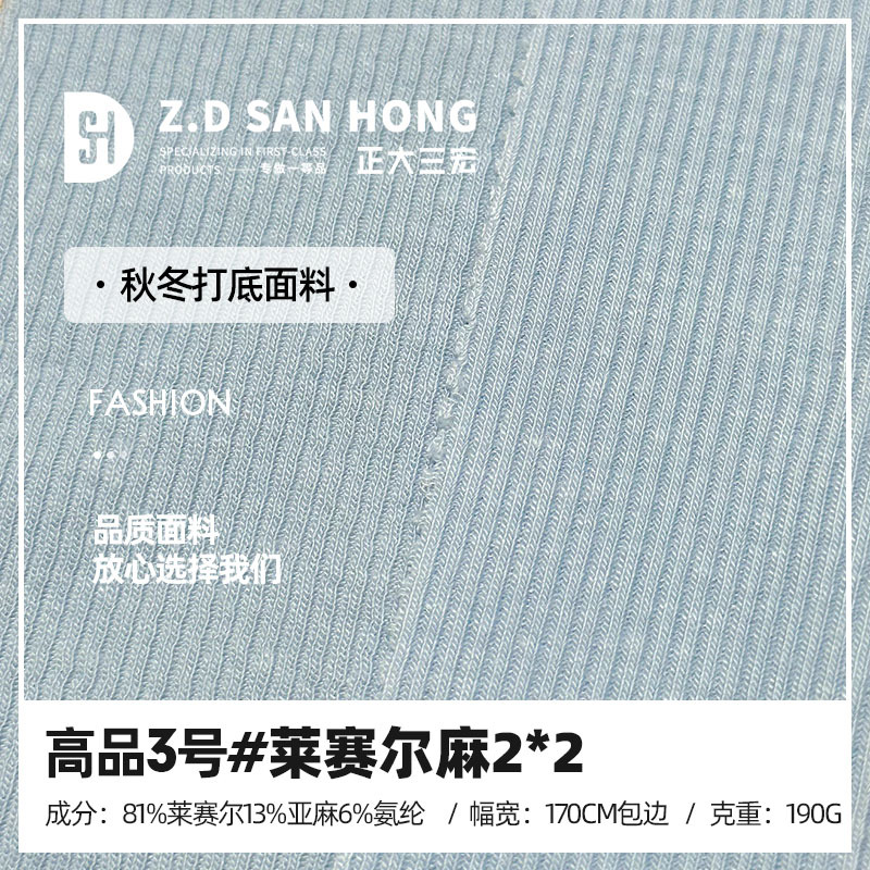 高品3号ライゼル麻2*2リブ190gメリヤスリネンピット生地ボトムtシャツベスト生地