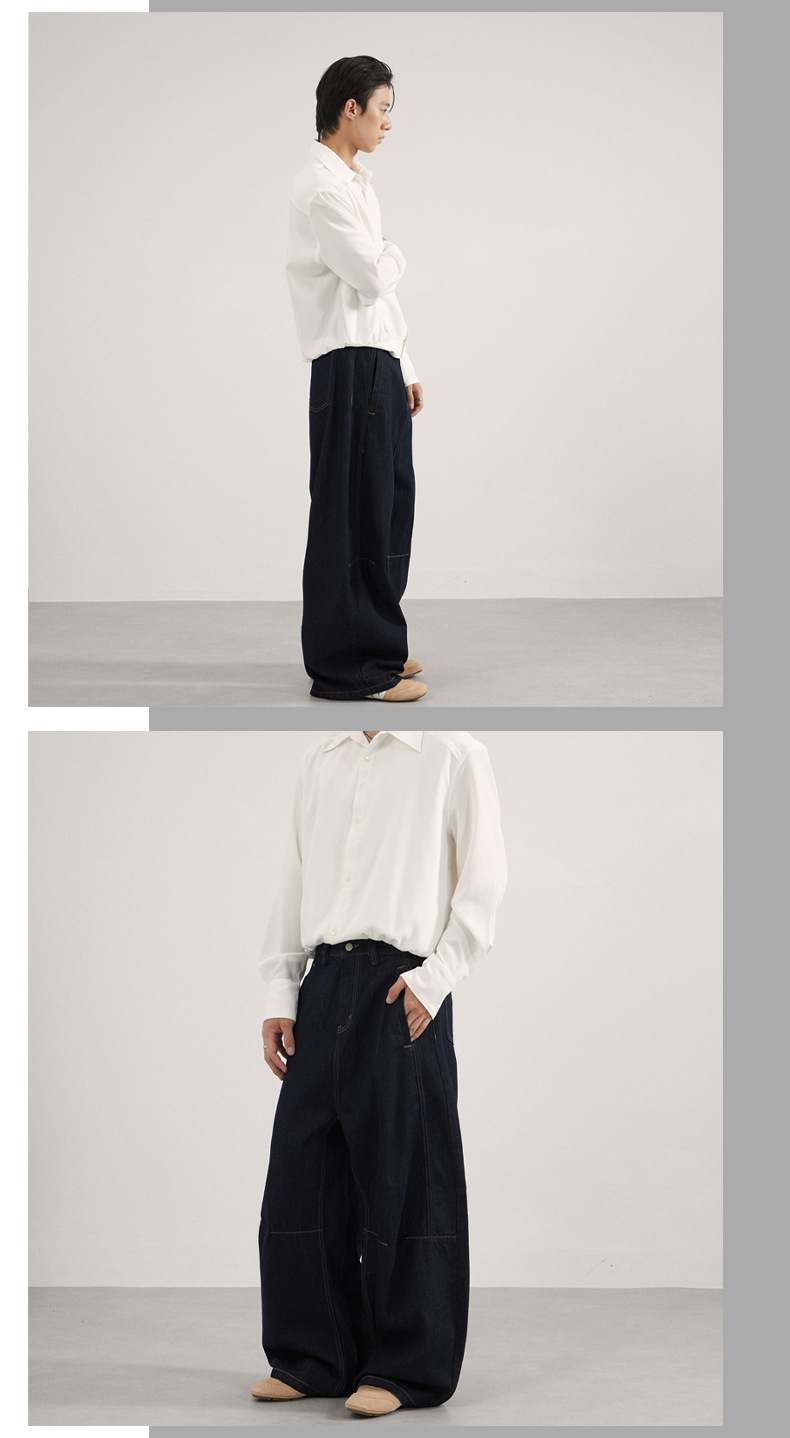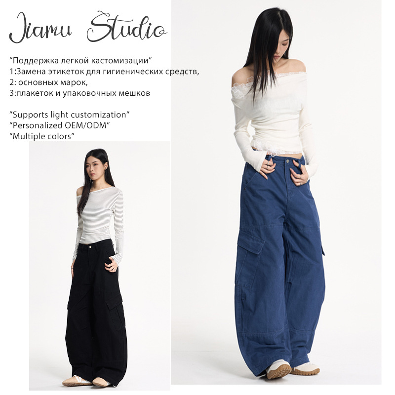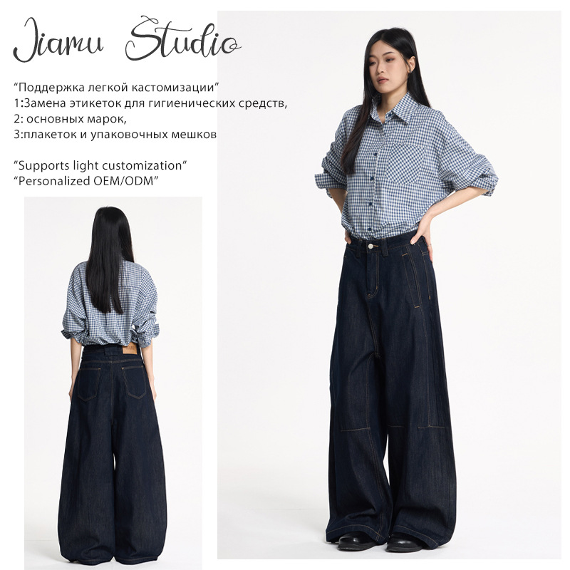 JIAMU 秋冬の主力モデルは、男女兼用のニュートラルなAタイプのストレートレッグルーズバギーマイクロワイドレッグジーンズです。